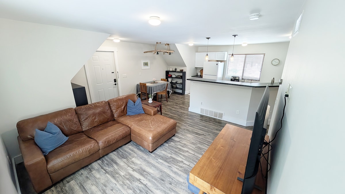 "Tiny House" guest house located under large oak trees near the beach, and not far from I-94 and the Michigan state line. Vaulted ceiling, open feeling. Light and bright décor. Full bathroom, comfy couch, and other amenities. Polished concrete floor, whitewashed shiplap ceiling, hand-crafted oak furniture, suspended shelving. High ceilings, windows with southern exposure, front porch with siting chairs and a grill. Convenient charger for electric cars. Never a cleaning fee.