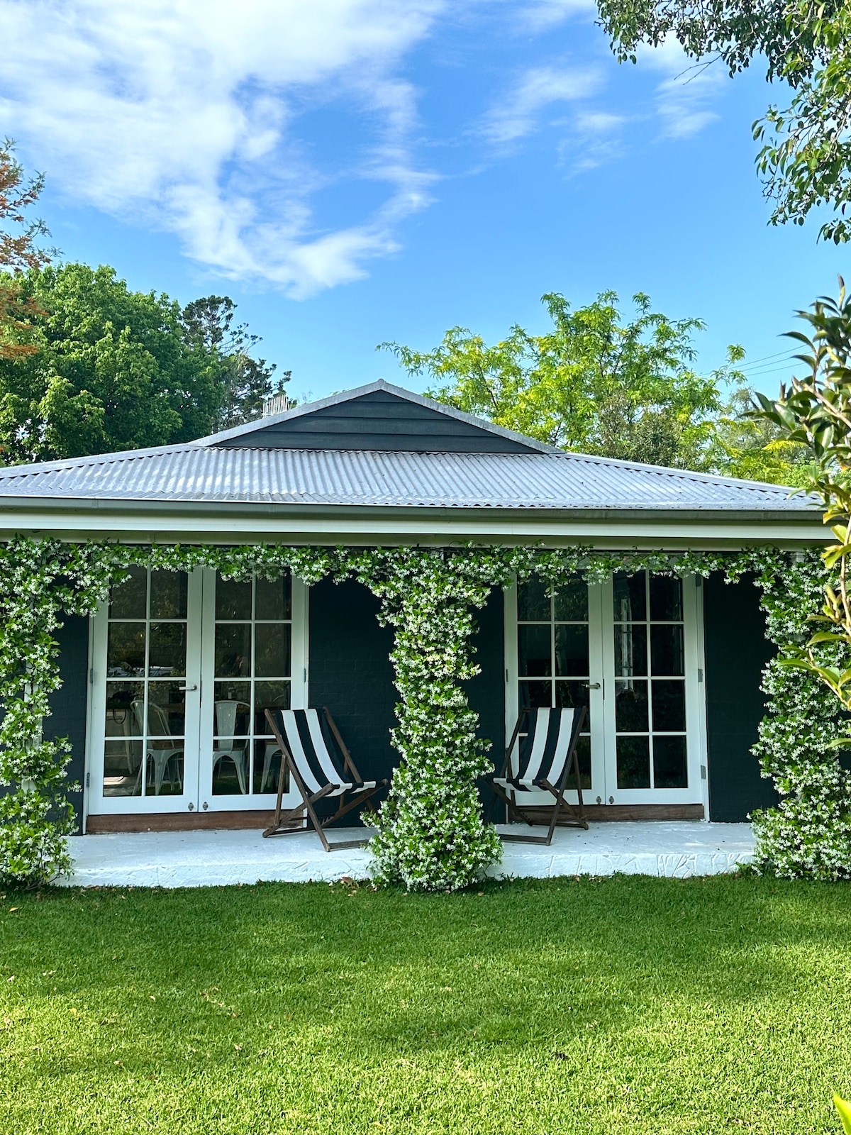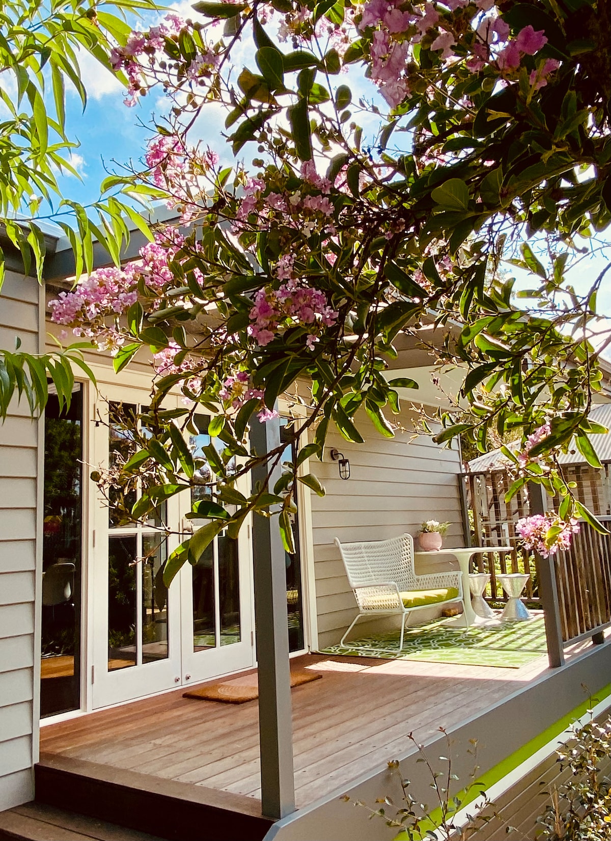 Our self-contained apartment oozes contemporary country charm with all the comforts of home. Settle back on the Adirondack chairs on the rear porch and watch the rainbow lorikeets feed in the dogwood tree shading the private courtyard. Snuggle up for a cosy night in watching the latest movies on Netflix or wander just minutes into town to enjoy the many outstanding cafes, restaurants and shops Berry has to offer.