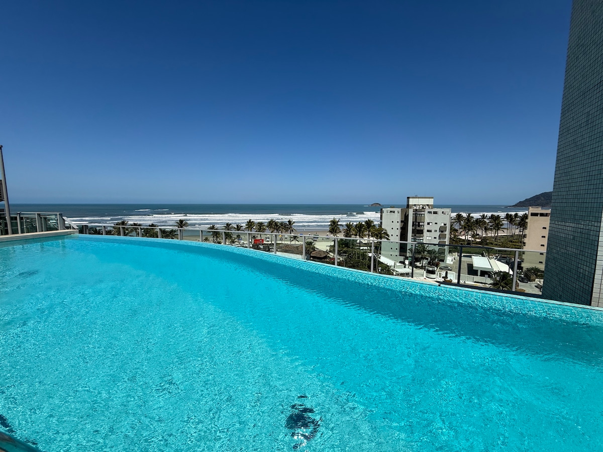 Imagine acordar com uma vista de tirar o fôlego MAR, SERRA e até CACHOEIRA bem na sua frente! Apartamento Pé na areia, com 2 quartos com ar-condicionado (1 suíte), 2 banheiros, sala confortável, cozinha equipada e sacada com churrasqueira Vai à praia? Leve tudo fácil com carrinho, cadeiras e cooler. Piscina de frente pro mar, brinquedoteca, sauna e cinema no condomínio. Conforto e praticidade pra curtir do jeito que você merece! Riviera, Mercados e Restaurantes a poucos minutos de carro! Enjoy