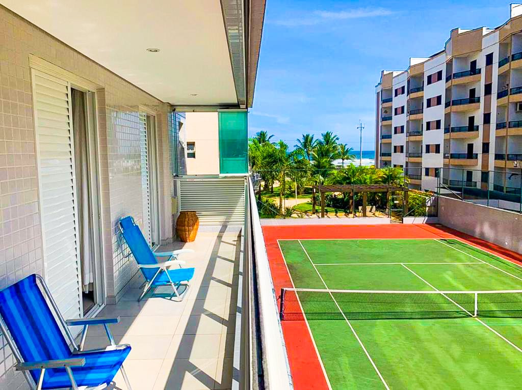 Aconchegante apartamento totalmente mobiliado e decorado frente ao mar. Equipado com utensílios básicos de cozinha. Varanda gourmet com churrasqueira. Condomínio com lazer completo: academia, salão de jogos adultos e teens, brinquedoteca, quadra poliesportiva e de tênis, sauna, salão de festas, espaço gourmet, piscina, máquina de gelo, serviço de praia (guarda-sol, mesa e 4 cadeiras).