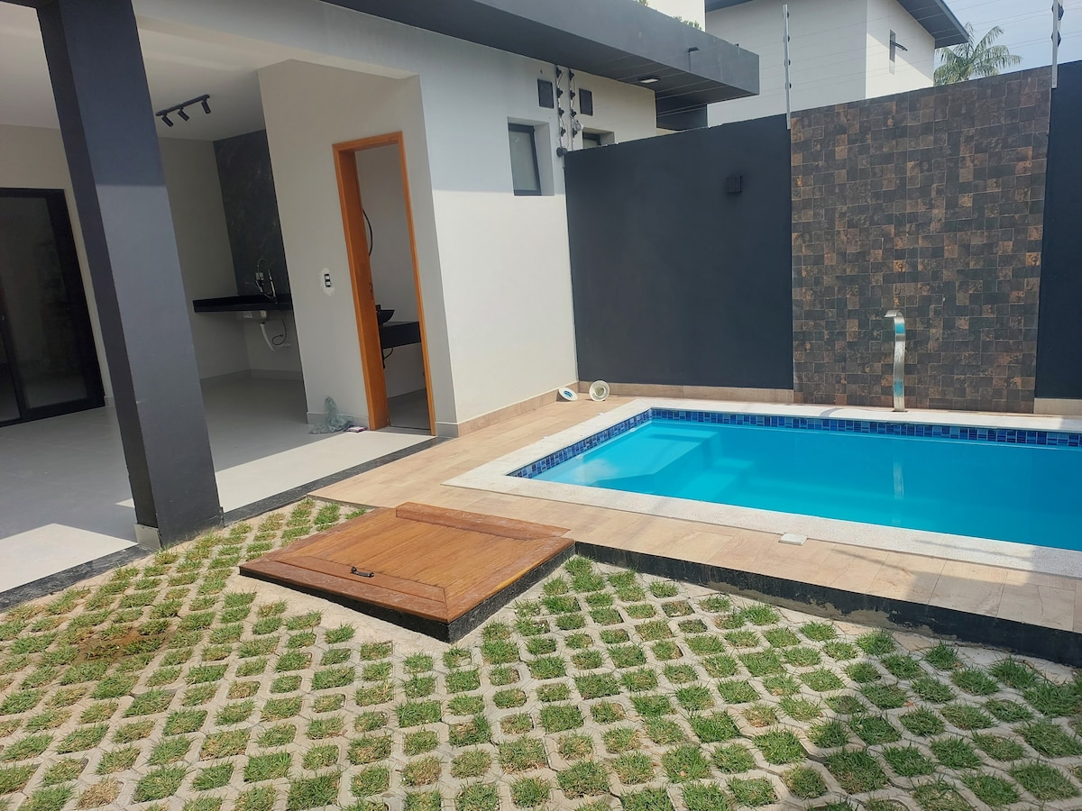The house is very comfortable and in perfect harmony with nature, in gated community and 24h security. The outdoor area has a large garden with palm trees, coconut palms and fruit trees. The barbecue place and table on the balcony allow a perfect integration between all guests, whether inside the house, in the garden, the pool and wet bar. The beach, which is 200m away from the house, is clean, flat and with crystal clear water, with moderate waves.