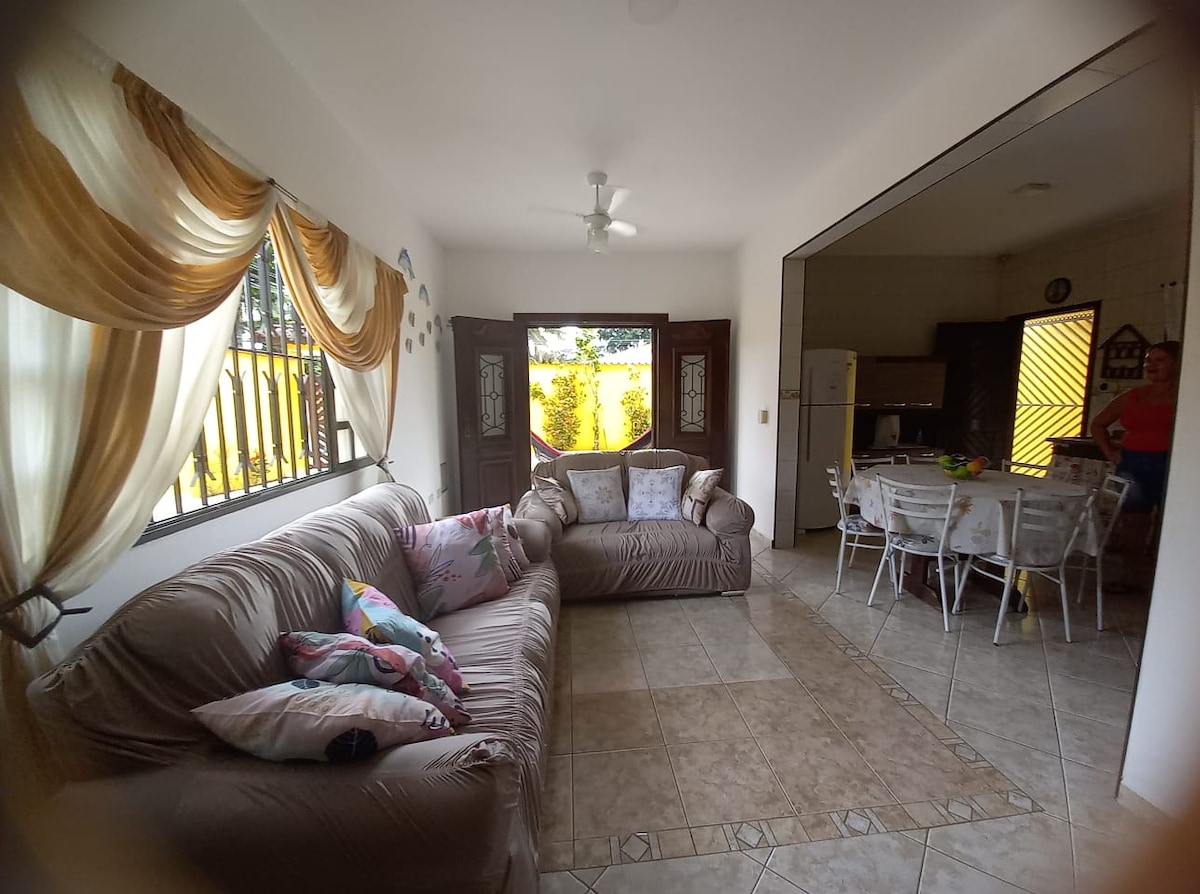 Os hóspedes serão surpreendidos com um espaço confortável 500 metros da praia, aconchegante, muito receptivo, com muita arborização. Há 1 sala, 3 quartos sendo 2 c/ ar condicionado e ( 1 c/ ventilador de teto) 3 banheiros, com uma linda área de churrasqueira, piscina 8x4x1,5 altura , quintal c/ estacionamento 4 carros, cozinha com utensílios, como talheres, pratos, copos. liquidificador, sanduicheira, microondas, geladeira, freezer horizontal, 3 Tvs."