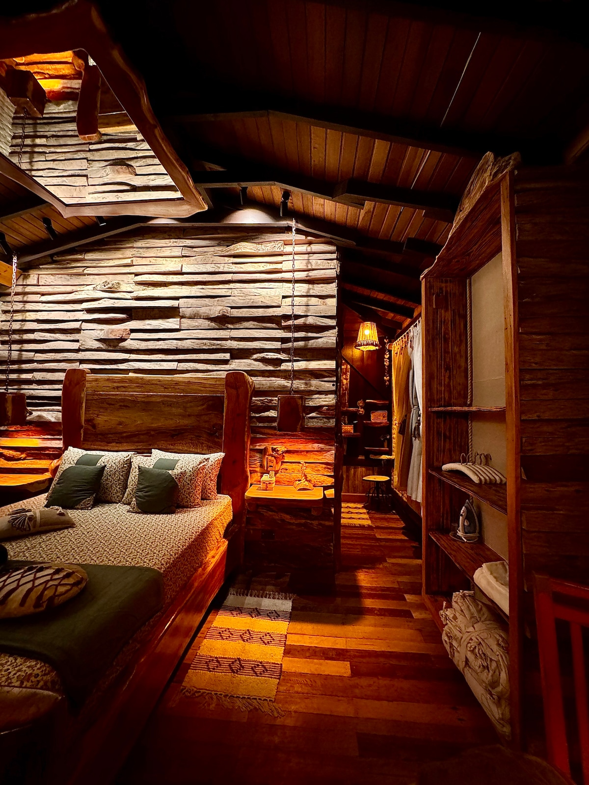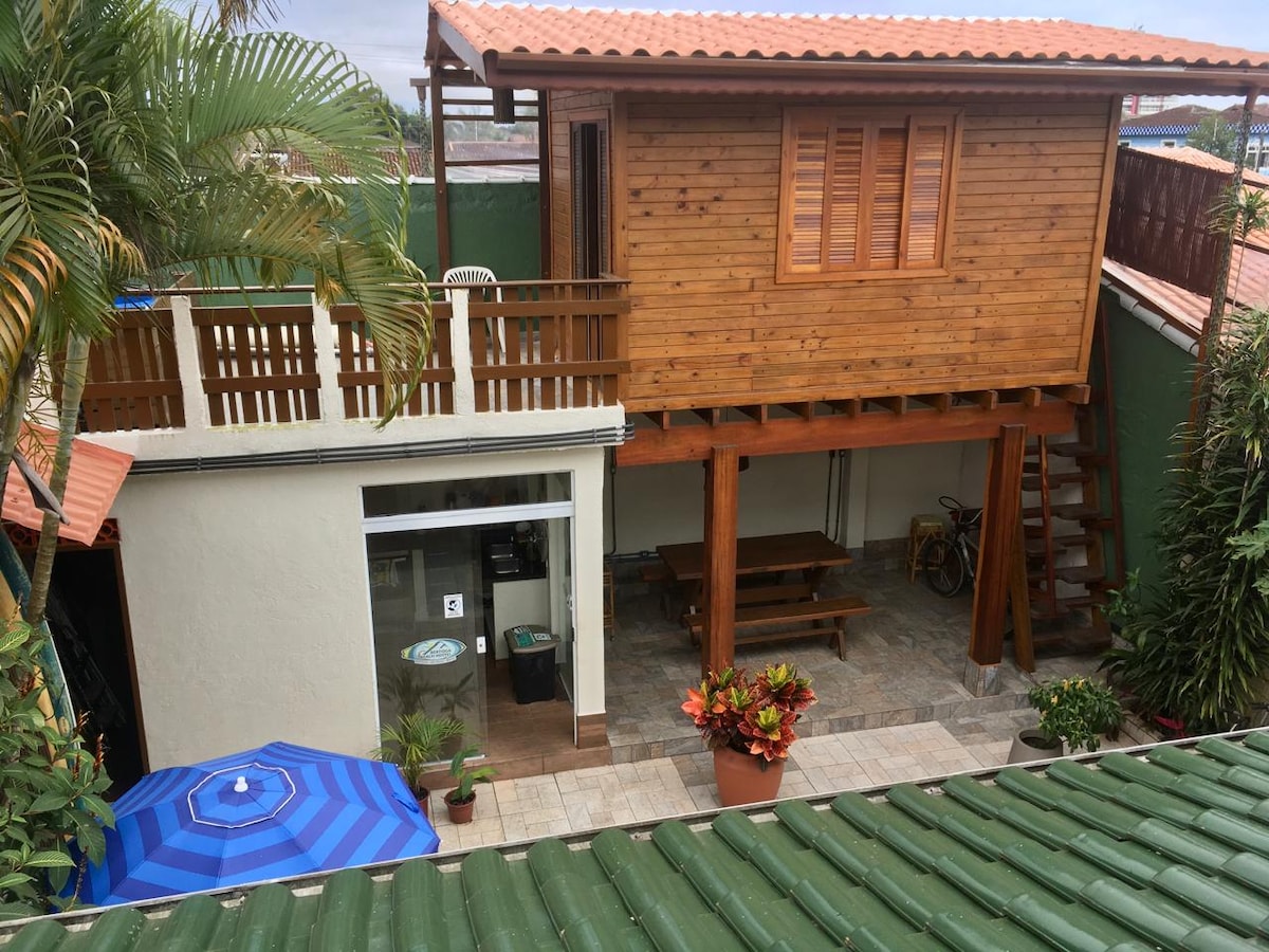halé de Madeira para casal, ou uma pessoa, super aconchegante, como uma casa na árvore, com vista linda das montanhas da Serra do Mar. Curta uma experiência elegante neste lugar bem-localizado, próximo ao Centro Histórico de Bertioga, há três quadras da Praia da Enseada, próximo a restaurantes, mercados, e todos os serviços. Caminhando 5 minutos você chega até a Balsa de travessia para o Guarujá onde tem o passeio para a Praia Branca, e ao Forte São João, e Parque dos Tupiniquins.