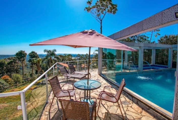 Linda e ampla, a casa conta com 5 suítes, sala e cozinha integradas, com vista para uma reserva florestal. Lazer completo em contato com a natureza. Piscina, sauna úmida, churrasqueira, cervejeira vertical, ar condicionado em todos os cômodos, lavanderia Leve toda a família a este ótimo lugar com muito espaço para se divertir.
