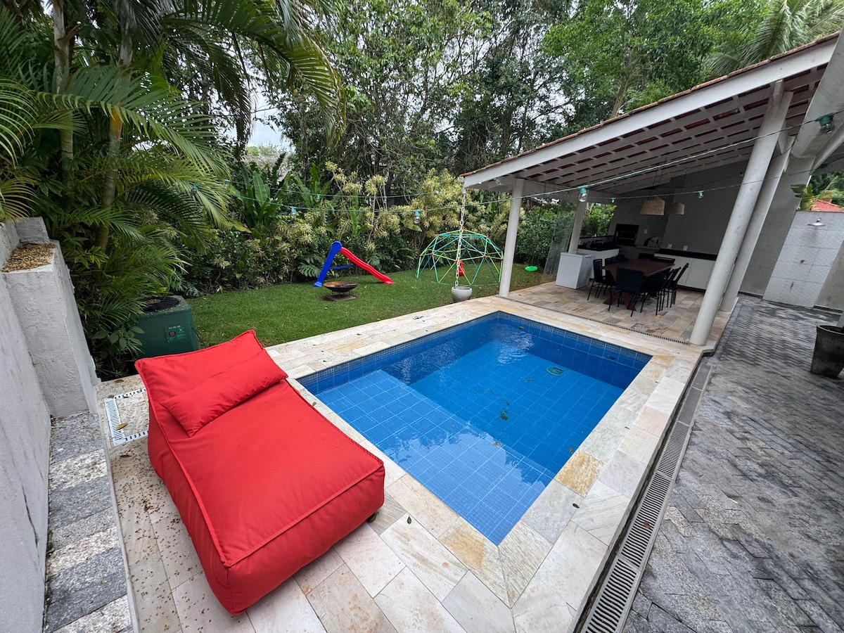 Casa totalmente reformada em 2023, estado de nova, linda e confortável, à 80 m da praia! Com 5 quartos (três suítes), todos com armários e ar condicionado split! Televisão de 62". Com espaço gourmet completo e todos os utensílios de cozinha. Lavanderia com máquina de lavar e secadora. Piscina com hidro. Acesso exclusivo para a praia. Praia muito segura para crianças. Próxima a um rio lindo e com muita natureza. Praia estritamente familiar.