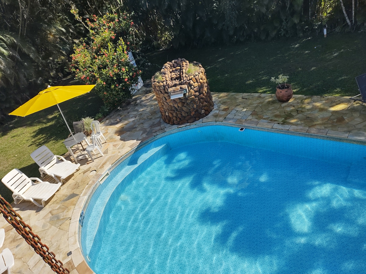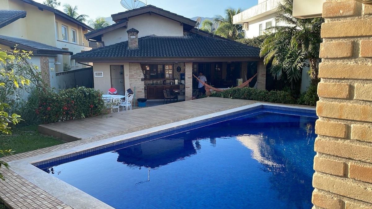 Condomínio é um verdadeiro resort para sua família, oferece: Wi-Fi na residencia Praia particular com serviço de bar/restaurante e toda estrutura de cadeiras e guarda sol, quadras de Tênis e poliesportivas, piscina coletiva com serviço de bar/restaurante, academia completa, parquinho e brinquedoteca para crianças. Casa com piscina privativa , vista para mata atlântica, churrasqueira , lugar seguro e maravilhoso.