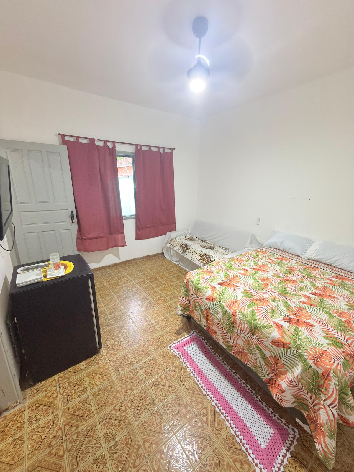 Suíte que fica nos fundos da casa principal com entrada pelo corredor lateral na região central de Bertioga a 150 metros da praia da enseada, do forte são João, casa da Cultura e do canal de bertioga lugar bem tranquilo ônibus de linha pra todas as praias da cidade, próximo de local onde aluga bicicletas, de restaurantes, padarias e supermercados. Com ar condicionado, wi-fi e tv smart com canais digitais, Próximo a balsa Bertioga Guarujá e prainha branca, AQUI SEU PET BEM VINDO🐶🐱