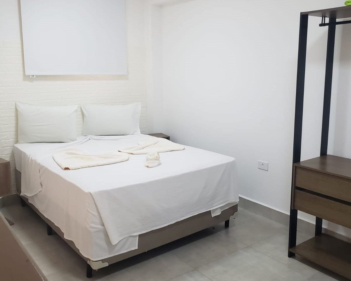 📍Suíte nova no centro de Bertioga 🏠✨ Ambiente confortável, limpinho e aconchegante ❄️ Ar condicionado 🖥️ SmartTV 32” 🧺🧻🧴 Roupas de cama, toalhas de banho e de rosto, tapete de banheiro, papel higiênico, sabonete líquido 🚿 Ducha externa 🌊50m da praia da Enseada/ Praia do Forte 🚤 1,5km da Balsa para a Prainha Branca/Guarujá 🎶🚴🏼♀️🎣 200m Tenda de Eventos (shows, Triathlon, Pier de Pesca) 🍴 Entorno: tem Pista de Skate, Restaurantes, Hortifruti, Mercado, Sorveteria.