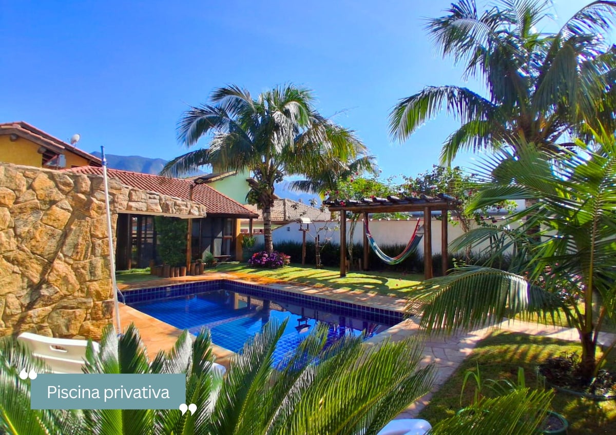 Sobrado com 4 suítes, todas com ar-condicionado, piscina com cascata e hidromassagem, churrasqueira, 257m², 4 vagas + vagas ao redor. Capacidade para 10 pessoas (maiores de 8 anos). Wi-Fi 50 Mbps, TV Smart. Condomínio com ambulatório, igreja, academia, rio, marina para jet ski, praia em frente, centro comercial (mercado, restaurantes, padaria, lojas), clube com quadras de futebol society e tênis, salões de jogos, academia entre outras comodidades. Pets permitidos mediante taxa de R$ 150 por pet