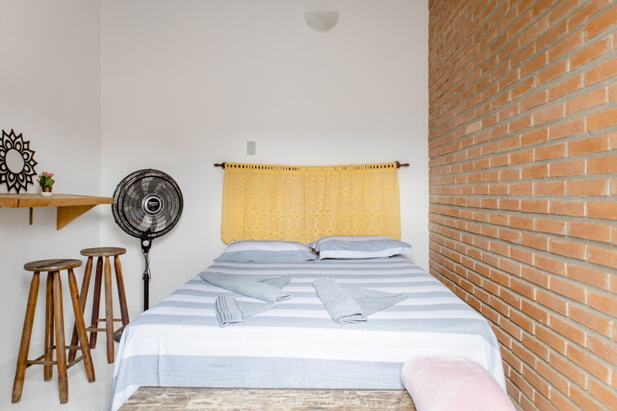 Suite de casal com varanda e vista para o canal de Bertioga, aconchegante, em meio a natureza, ideal para quem quer descansar longe do movimento das cidades, fazer trilhas, pescar, surfar e desfrutar do melhor que a natureza oferece. Localizada na Prainha Branca é equipada com cama de casal, ventilador, frigobar, banheiro e roupa de cama e banho. Podemos fornecer um colchão de solteiro quando necessário.