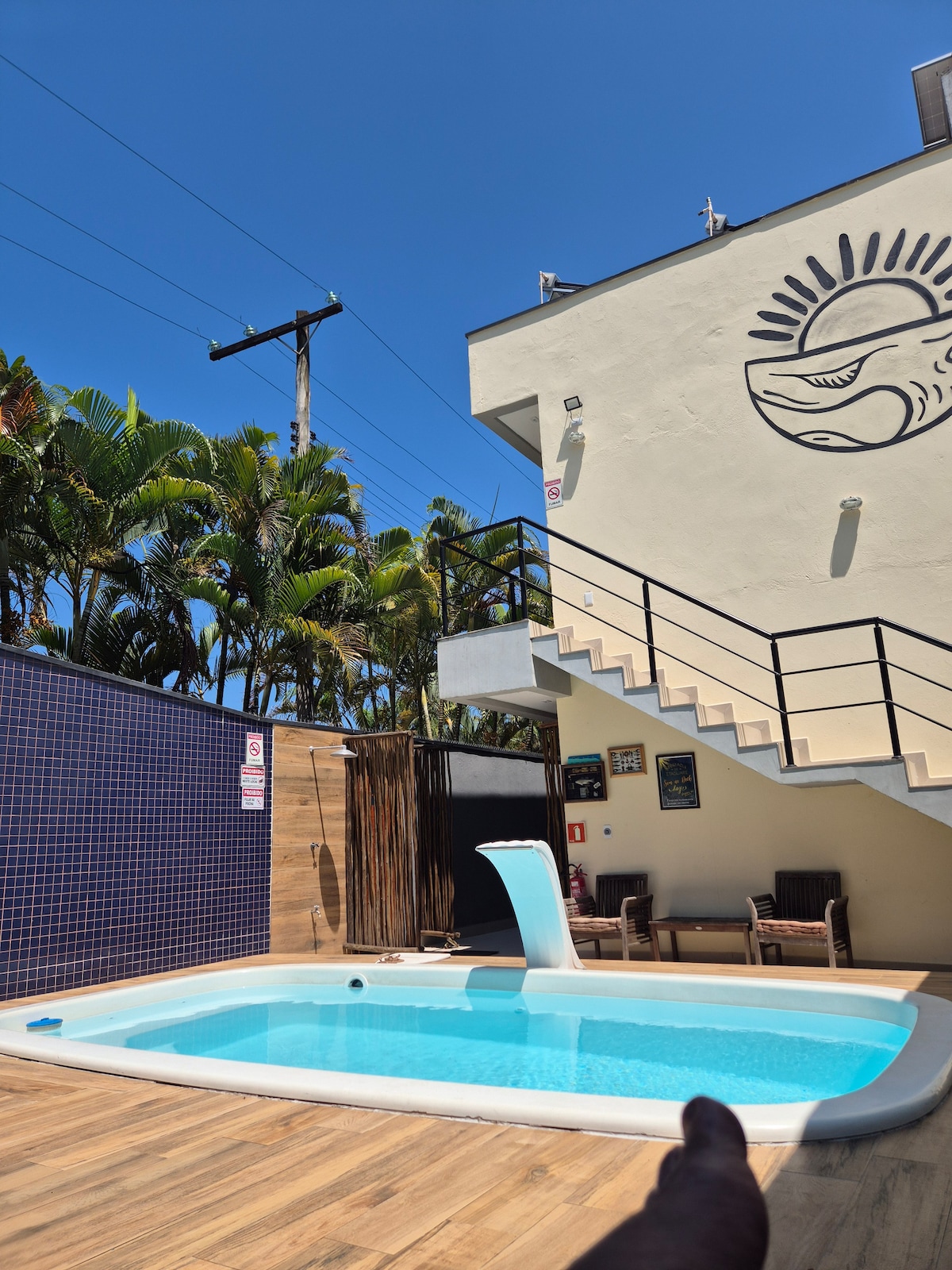 Suíte individual confortável feita em container, localizada próximo à natureza no bairro Jardim São Lourenço, entre as praias de Riviera de São Lourenço e Itaguaré, duas praias maravilhosas da região, aprox à 1km da praia. Nosso espaço conta com uma bela piscina com cascata, spa e prainha para as crianças, quadra de areia com rede para beach tennis/futvolei além da área gourmet com fogão e microondas. Não é no condomínio de Riviera. Lugar perfeito para relaxar e recarregar as energias!