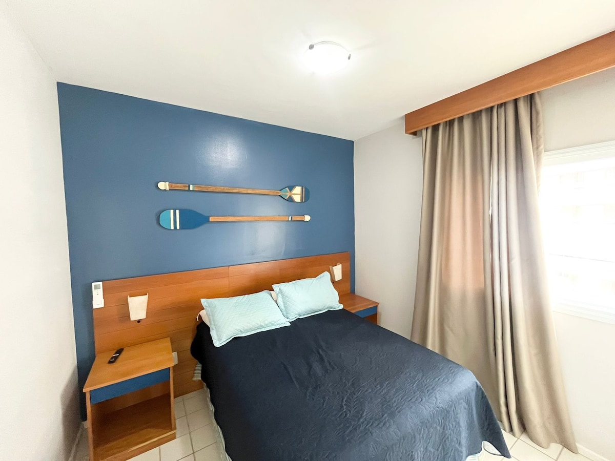 Flat Boulevard muito bem localizado, com linda vista para o mar e piscina, à 350 m da praia (9 min à pé). Serviço de praia. Cozinha com fogão elétrico, microondas, forninho e utensílios básicos para cozinhar. Cafeteiras comum e Nespresso. Uma suíte com cama Queen e um sofá-cama Casal na sala. Televisores no quarto e sala com NETFLIX, ar condicionado no quarto, Wi-Fi 300 mega, 1 vaga, serviço de arrumação diário, restaurante para refeições (não inclusas na diária). Próximo ao Shopping/centrinho.