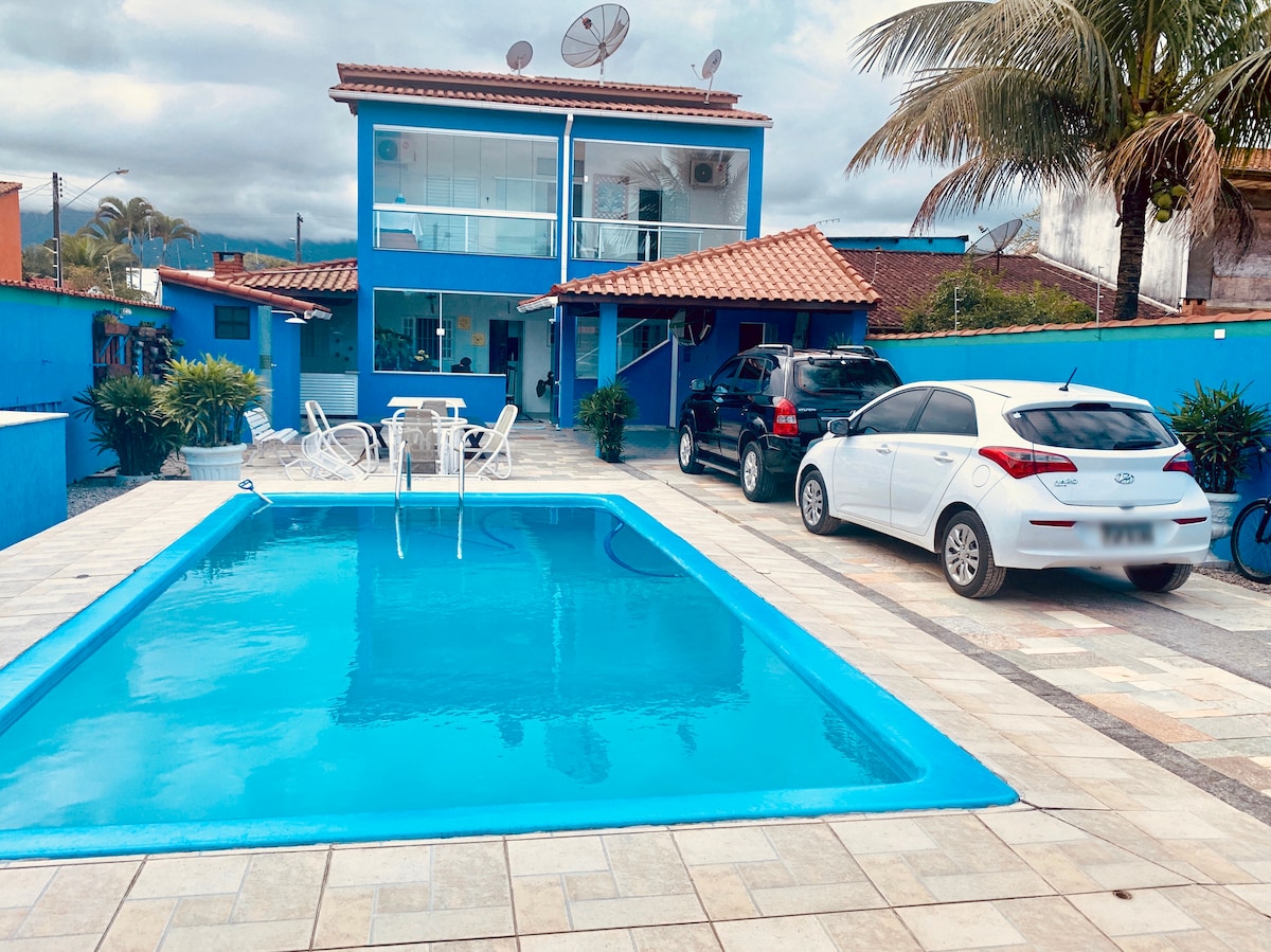 Bem pertinho da Praia (30 metros) Venha com sua família a este lugar confortável para relaxar e ouvir o som do mar *NÃO É NA RIVIEIRA* 📍 Casa situada na Praia da Enseada, no bairro Jardim das Canções, ao lado do SESC. ✨Rua tranquila e com pouco movimento 🏠Construção nova e moderna 🛋️Decoração aconchegante 🍽️Cozinha e churrasqueira bem equipadas 💧 Piscina com ozônio e aquecimento solar ☀️ No inverno, com sol, atinge no máximo 26°C. Profundidade: 1,40 m 🚐 Não aceitamos VANS.