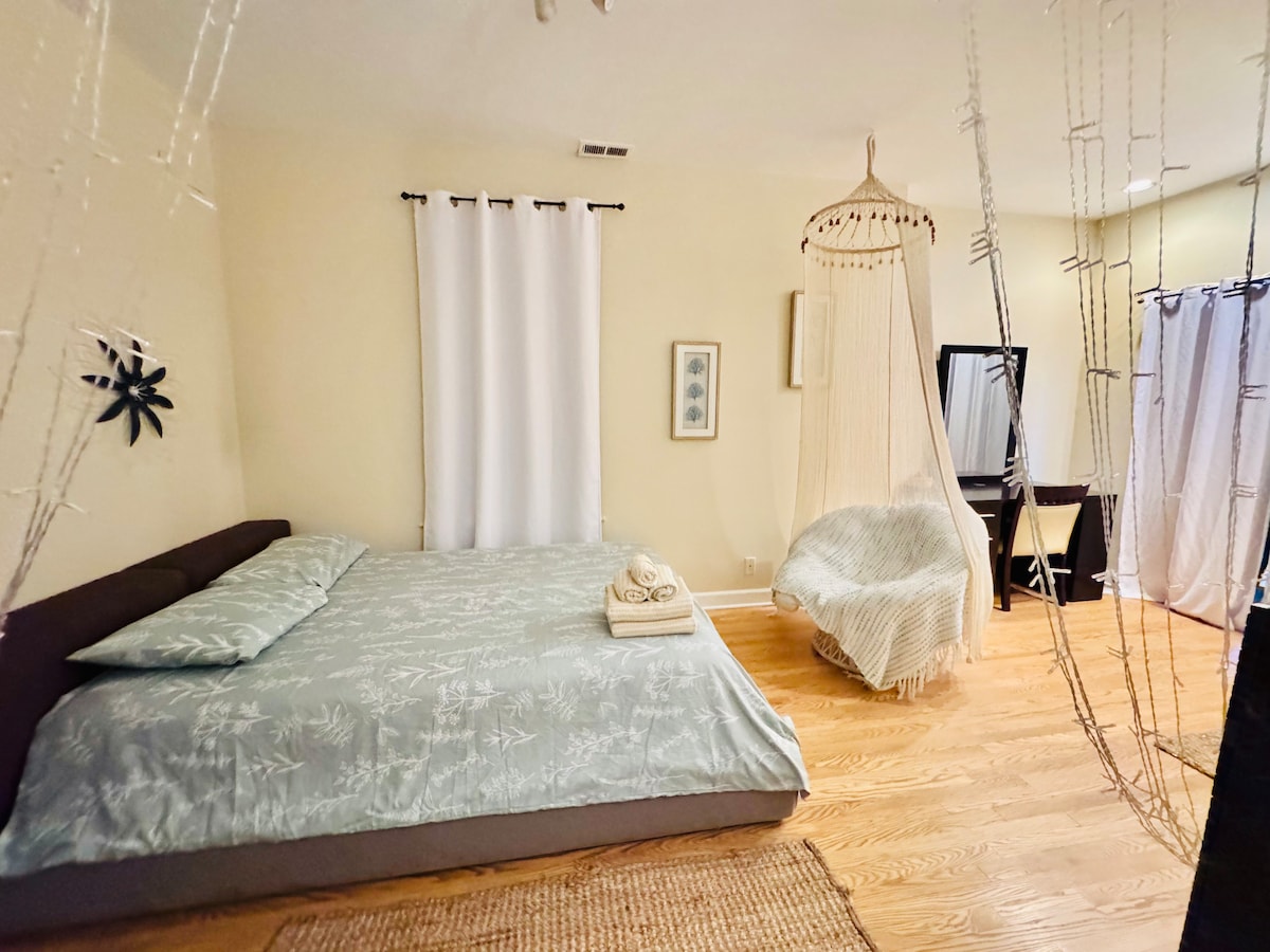 This unique place has a style all its own. Enjoy this beautiful, cozy guest studio with modern touches and well furnished living area, small kitchenette with mini fridge and microwave to reheat a quick bite before heading to the city, full bathroom with rainfall shower and handheld sprayer to help you relax after a long day. Flat screen TV with Xfinity streaming device so you can connect your accounts and enjoy your favorite shows and movies for a quiet stay in.