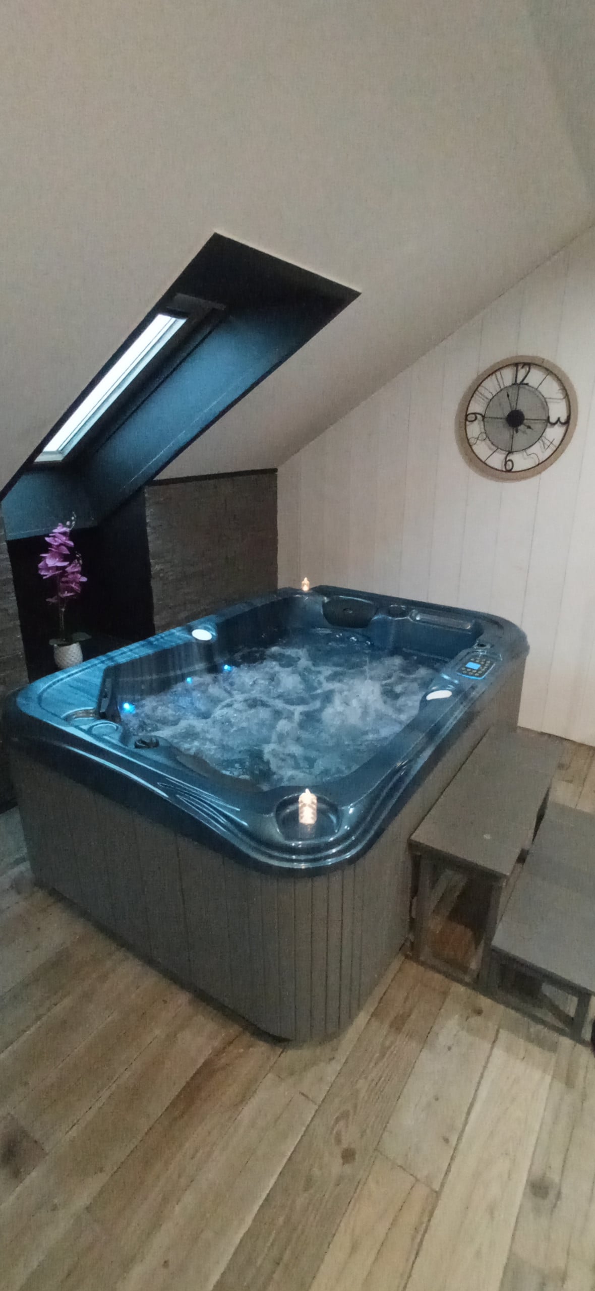 Envie de calme et de repos ? Besoin de vous retrouver, de vous ressourcer et de prendre le temps ? Découvrez notre Chambre Spa au coeur du centre ville de Besançon. Ce petit cocon dispose d’une très grande douche à l’italienne, d’un spa privatif, un écran plat, une kitchenette … Des petites douceurs seront à votre disposition dans le logement. Appartement disponible à partir de 17h30 juqu’à 11h le lendemain. Possibilité de rajouter des options (plateau repas, décos..) Au Doubs Rêve