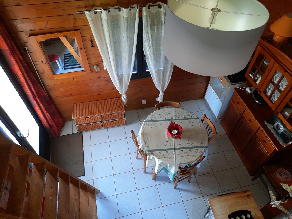 Petit chalet au bord d’un étang privé idéal pour couple avec ou sans enfants dans lequel vous pourrez passer de bons moments et pêcher (gratuit car bcp de nénuphars en période de floraison). Au rez de chaussée, une pièce à vivre avec cuisine entièrement équipée et une salle de bain avec wc et douche. A l’étage: 1 dressing et 2 espaces de couchages : 1 lit de 2 personnes (140x190) et 1 canapé lit 2 personnes. A l’extérieur, une belle terrasse avec grande table, parasol chauffant et barbecue.