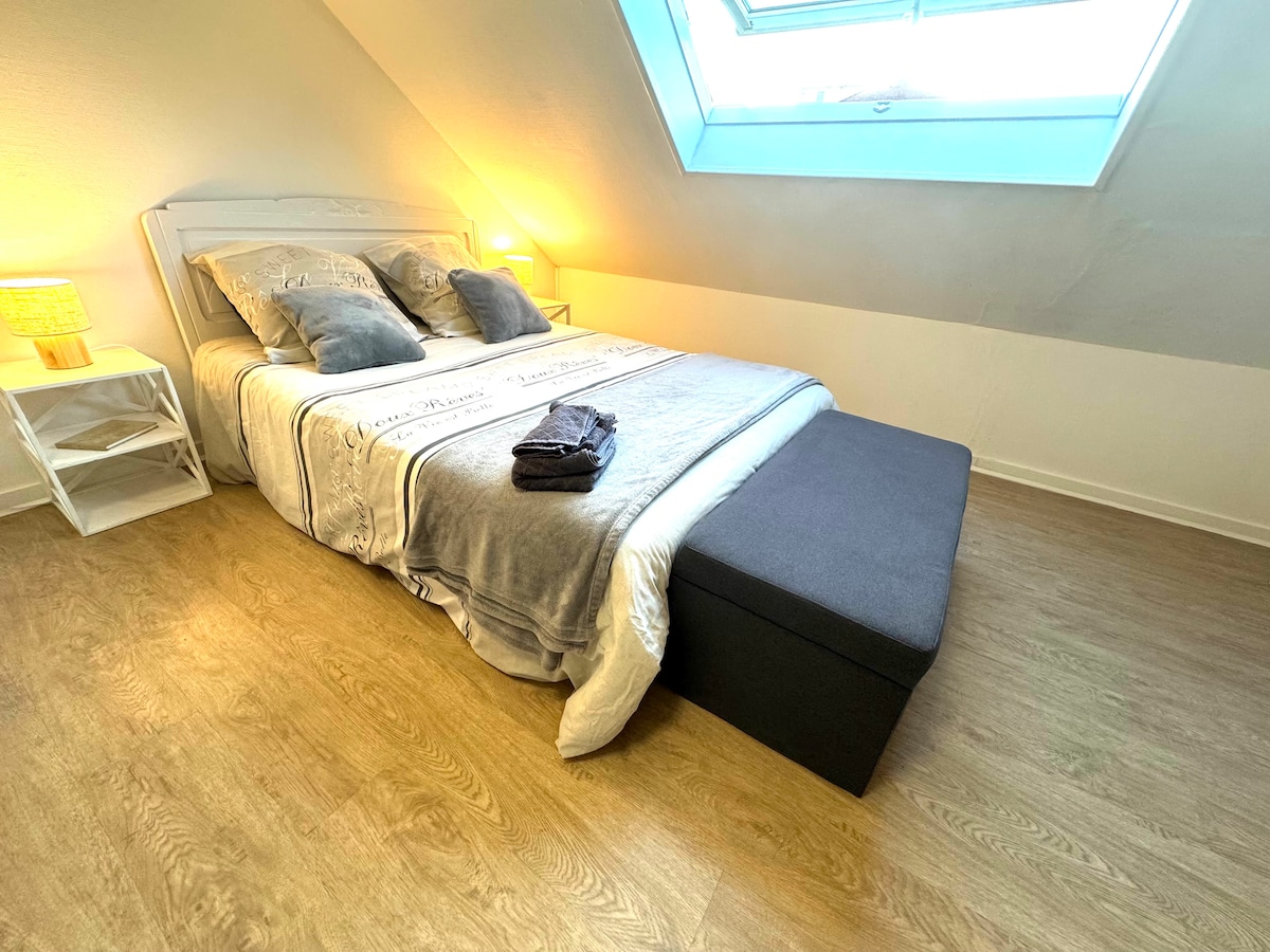 Ce logement tout équipé et paisible, sans vis-à-vis, vous permet de passer un séjour détente seul ou à deux. Il sera aussi idéal pour un pied-à- terre lors de vos déplacements professionnels. Son emplacement en dessous de ma maison lui permet de rester toujours au frais même lors de fortes chaleurs. Pour l’hiver, des vannes thermostatiques connectées ont été installées afin d’adapter le chauffage à vos besoins. L'accès à l'appartement se fait par des escaliers extérieurs. (Maj décembre 2024)