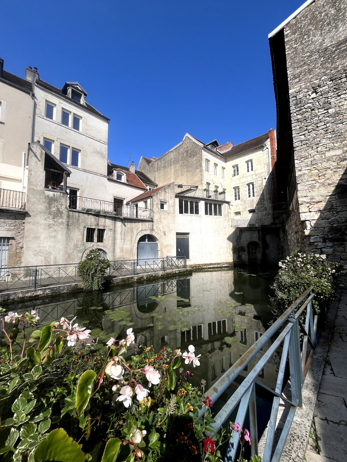 Grand Appartement en "coeur de ville" cuisine dînatoire et pièce de vie lumineuse avec lit king size. Petite terrasse en cour intérieure. Charme de l ancien. Situé à 2 pas de la petite Venise jurassienne, de la collégiale de Dole, du quartier historique, du marché et de la vélo route, accès Commanderie à pied . Gare à 10 min à pied . Résidence est sécurisée pour y ranger les vélos. Nombreux commerces et restaurants dans la rue qui est piétonne au calme et parking gratuits à proximité .