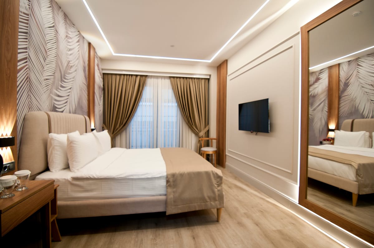 Forty Nişantaşı Hotel’de yer alan bu konforlu oda, İstanbul’un en prestijli semtlerinden Nişantaşı’nın merkezinde keyifli bir konaklama sunar. Modern ve sade tasarıma sahip odamız; rahat yatak, özel banyo, klima, ücretsiz Wi-Fi ve günlük temizlik hizmeti ile donatılmıştır. Alışveriş caddeleri, restoranlar ve toplu taşıma noktalarına yürüme mesafesindeki konumu sayesinde hem iş hem de turistik konaklamalar için ideal bir seçenektir.