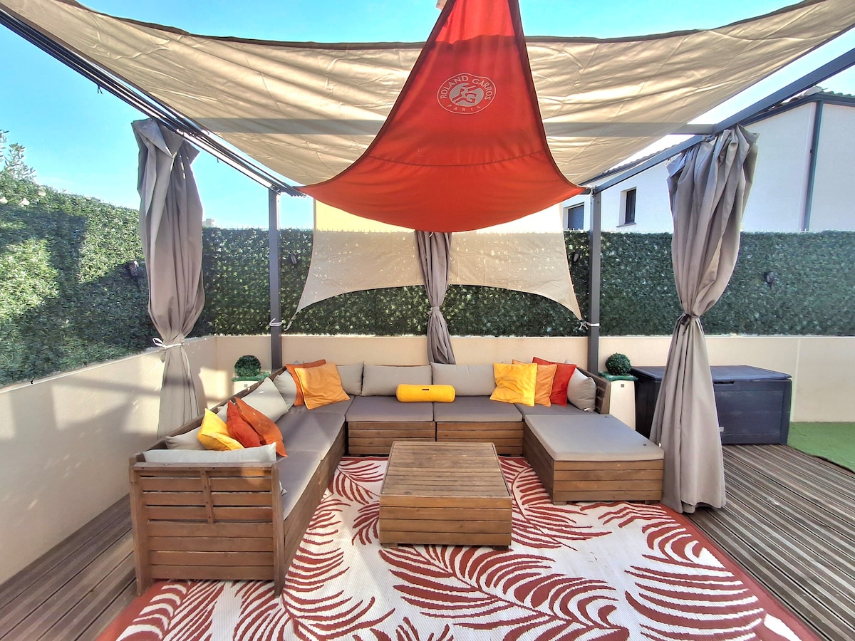 Ravissante maison de village 11O M2 avec CLIM réversible, idéale pour les familles ou les petits groupes d’amis. En plein centre de Bessan A 10 min d’Agde, Situé à 10 min des plages du Cap d’agde, vous êtes donc à 35 min de Montpellier, 20 min de Béziers et à 20 min de l’arrière pays. Bien qu'il n'y ait pas de jardin, la coutume est de s'asseoir à l'extérieur de la propriété et vous verrez de nombreux habitants le faire et sortir le barbecue. Volets roulants électriques avec télécommande .