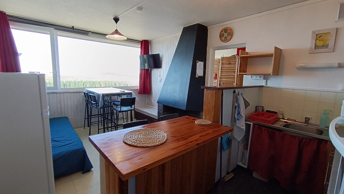Situé dans la résidence Les Chalets de Superbesse, appartement de 33 m2, au 5 ème étage, accessible par ascenseur et escalier, avec balcon exposé sud. Il comprend : - une pièce principale avec coin cuisine tout équipée et coin salon avec canapé convertible ( 2x1 personne ) - une chambre avec lit 140 cm et placard encastré - un WC séparé - une salle de bain avec baignoire - un balcon de 9 m2 avec mobilier de jardin - un local à ski/rangement privatif
