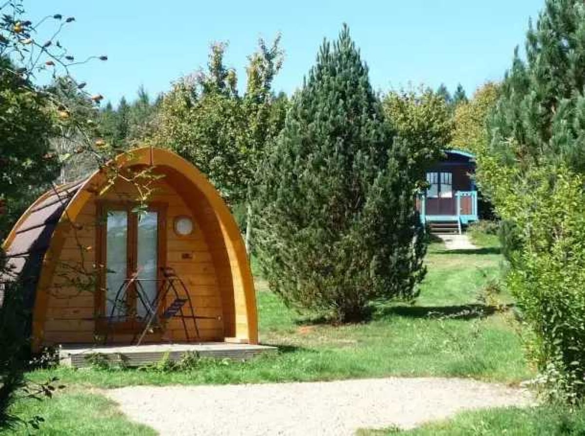 Notre petite cabane accessible PMR est situé au camping posé sur une plateforme a coté de notre poulailler. Avec une isolation en paille, des lumières alimentées par l'énergie solaire et des toilettes alimentées par l'eau de pluie, on parler d'une cabane écologique. Elle est équipée des vrais lits, d´un simple cuisine, salle de bain et un coin relax. En dehors l´haute saison, vous pouvez demander un repas du soir à emporter, pour un prix raisonnable. Vous dégusterez alors des plats délicieux.