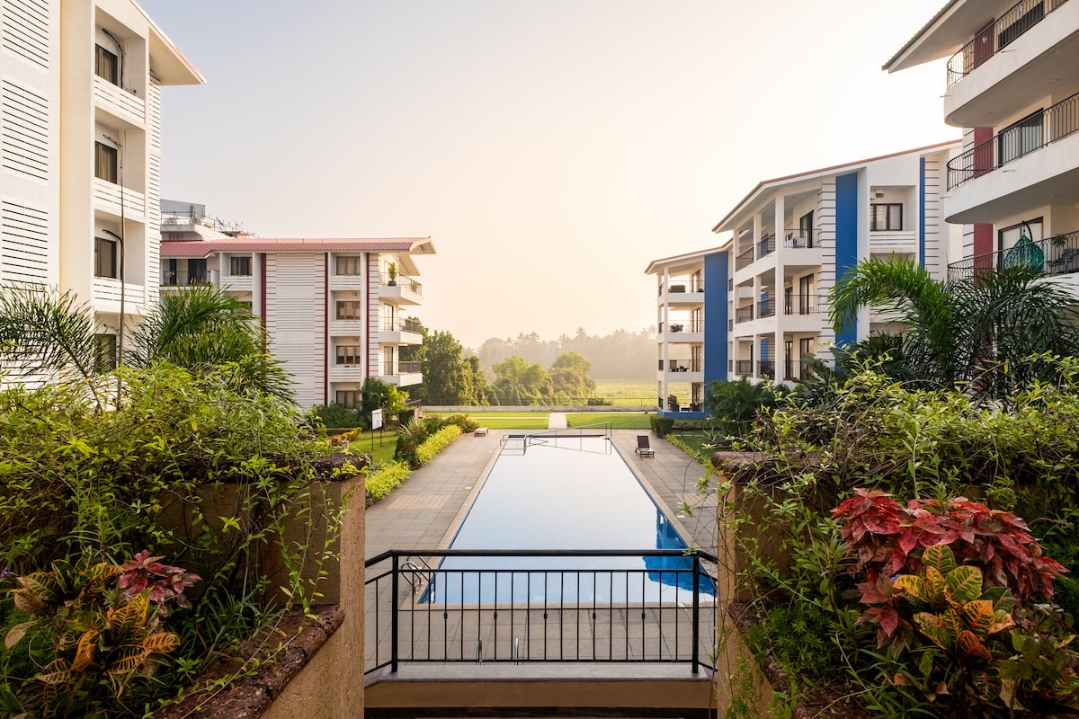 03-2卧室房源,2个泳池,健身房,电动汽车充电,靠近海滩,果阿