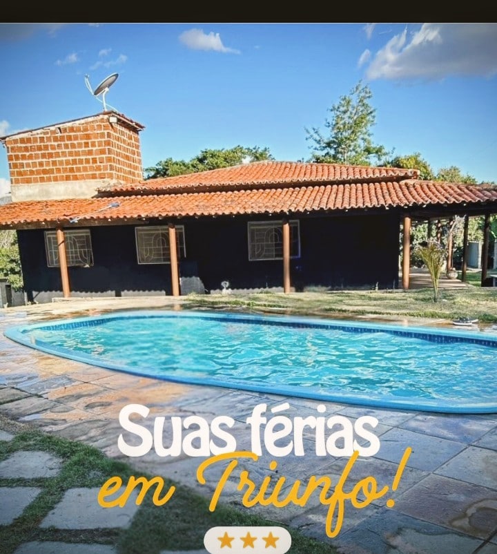 Você merece um refúgio de verdade. Esta Casa de Campo em Triunfo-PE é perfeita para quem busca descanso, lazer e contato com a natureza, sem abrir mão de conforto e estrutura. São 3 quartos, piscina privativa, quintal com redes, área externa ampla e estacionamento para mais de 10 veículos. A apenas 3 km do centro, é ideal para famílias e grupos de amigos viverem momentos únicos juntos. Reserve agora e aproveite a tranquilidade do sertão com todo o conforto que você merece!
