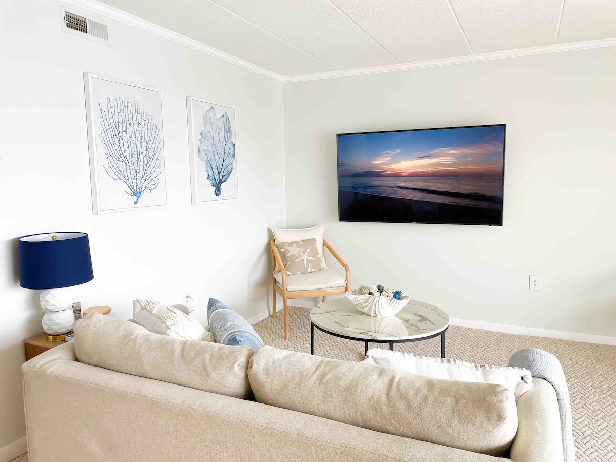 Our beachfront 1-bed, 1.5-bath condo for four offers a spacious living area, fully equipped kitchen with a breakfast bar, and a luxurious bedroom with a king bed, all steps from the beach. Enjoy ocean views from the balcony, stay entertained with an HDTV and Roku, and explore nearby dining and entertainment, leaving your car in the designated parking spot. The condo, recently updated, provides versatile sleeping options, modern amenities, and convenient bathrooms for a comfortable stay