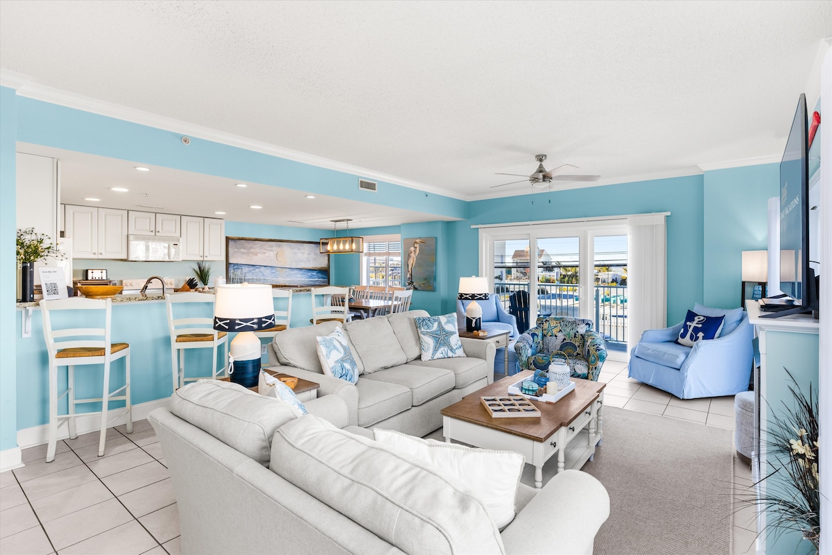 Your family will be close to everything when you stay at this beautiful condo located right on the beach with expansive balcony views of both ocean and bay. With the best amenities around, this year-round rental is equipped with an enormous indoor pool, basketball and tennis courts, shuffleboard, saunas, gym, library, sun deck, & game room with arcades, claw machines, billiards, and air hockey tables. This 2-bedroom unit comfortably sleeps 6 which makes it ideal for families or couples alike.