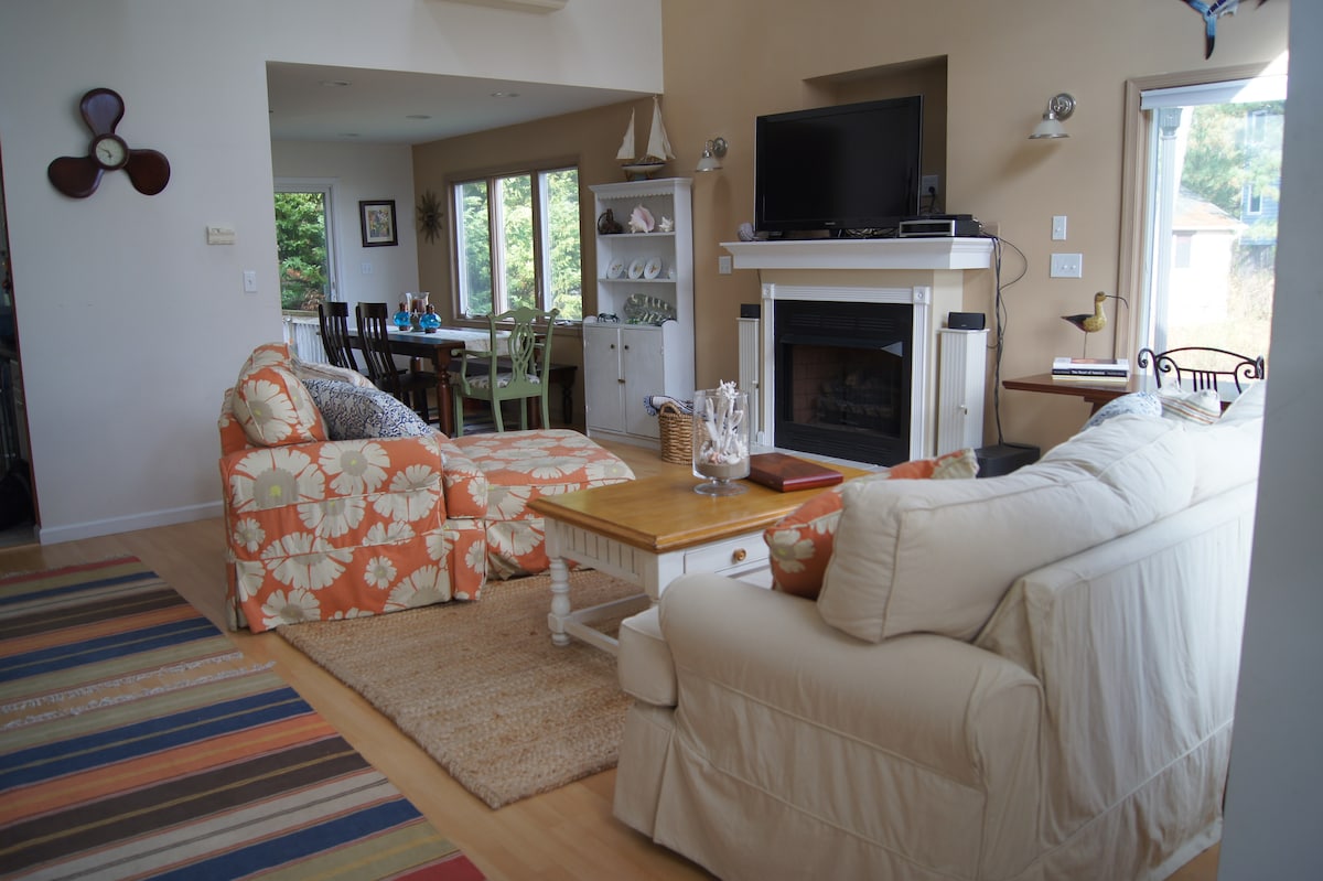 You've never seen waterfront like this. Welcome to Edgewater Escape, a luxury bayfront loft apartment that hangs entirely over the bay on 7th street in downtown Ocean City. Sit on the bay front porch or hang out inside and watch boats, dolphin, birds, and sometimes even seals swim by within feet of the porch. The loft has a roomy king sized bed and the downstairs couch pulls out into a comfy queen bed. Recently renovated, it comes fully equipped for your big trip or quiet staycation :)