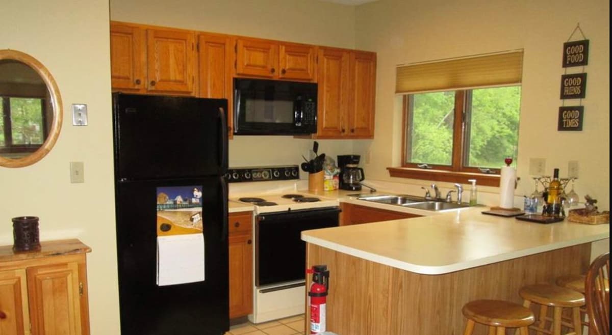 KimBills' is a newly renovated, cozy, first floor condo located at Attitash Mtn. Village, just minutes from the Saco River. Full kitchen well stocked with necessities, gas fireplace, A/C, Murphy bed and pull-out sofa bed with new, comfortable mattresses. Cable/internet, 55" TV, & board games. Large deck with lighting. Guests enjoy full use of all Attitash Mtn. Village amenities including river access, pools, sauna, hot tubs, tennis & basketball. Close to shopping and area attractions.