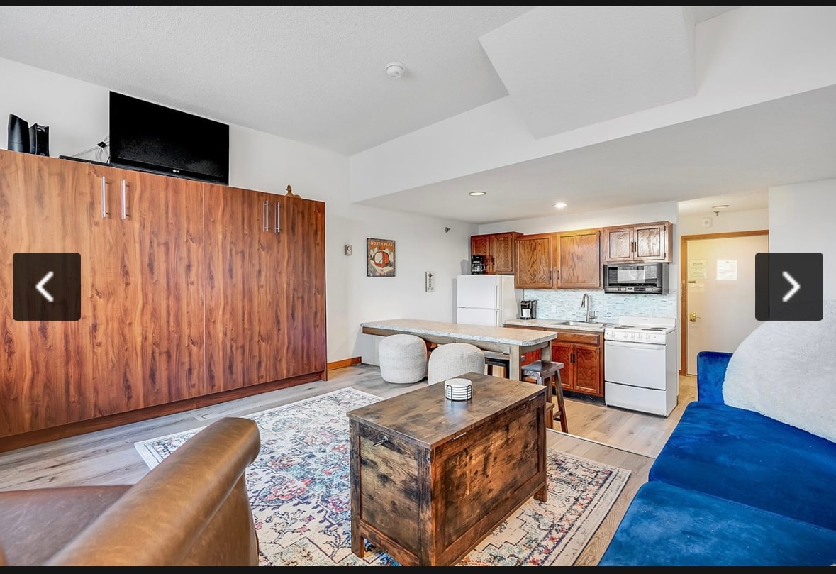 Less hassle = more fun! Literally wake up , enjoy an easy breakfast, strap ski boots on & walk out to roadrunner trail. Dreamy vacation in this Sleep 3 slopeside studio condo. HOUSEKEEPING INCLUDED IN RATE. Walk to slopes & outdoor heated pool with huge hot tub open daily 11am - 9pm during ski season. Plush queen bed on living room level with views of white heat- no sofa, 1 easy chair and twin bed on kitchen level. Fully equipped kitchen, flat screen Tv & wifi. Brookside building #2 - unit A210
