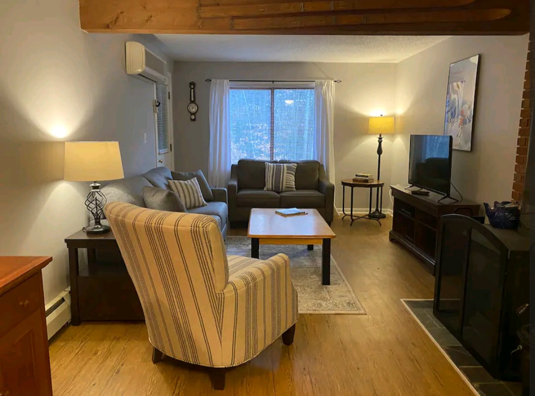 Welcoming mountain escape in our Glen, NH condo, just minutes from Attitash, Wildcat, and Cranmore for skiing, with Storyland just a mile away! Unwind in the cozy, spacious living room with plush seating and a fireplace, perfect after a day on the slopes or visiting Santa. Enjoy seasonal mountain views from the kitchen and living room. The modern kitchen, equipped with new appliances and ample supplies, makes home-cooked meals a breeze.