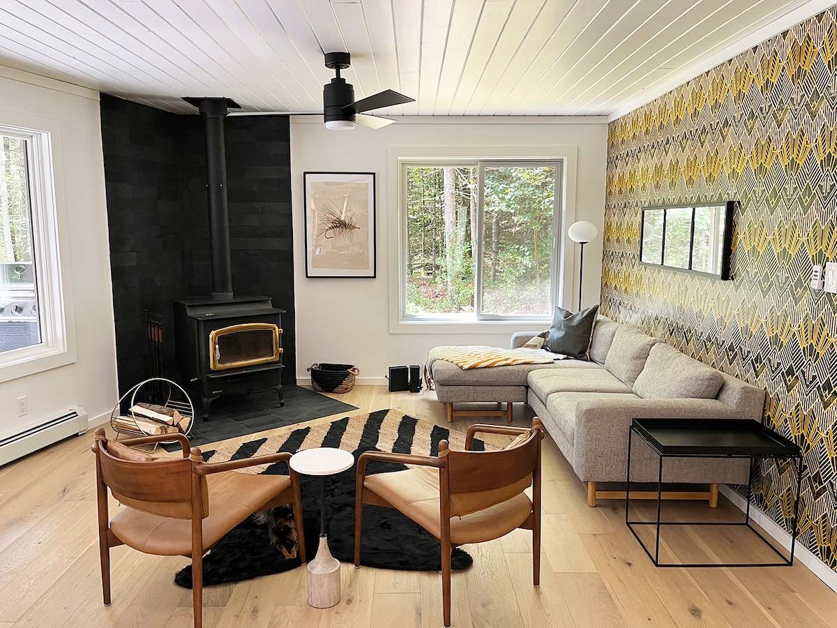 'The Original Bungalow,' part of the @boutiquerentals_' collection, is a Scandi-chic renovated bungalow surrounded by stunning trees. Located only 2 hours from NYC, Smallwood is a destination in itself: walk along the lake or waterfall, or take the canoe or SUPs for a paddle (seasonal). Nearby are Bethel Woods Center for the Arts, breweries, Livingston Manor & cute Delaware River towns with dining+shopping. In the evening, unwind by the fire pit or curl up by the fireplace with a book or movie.