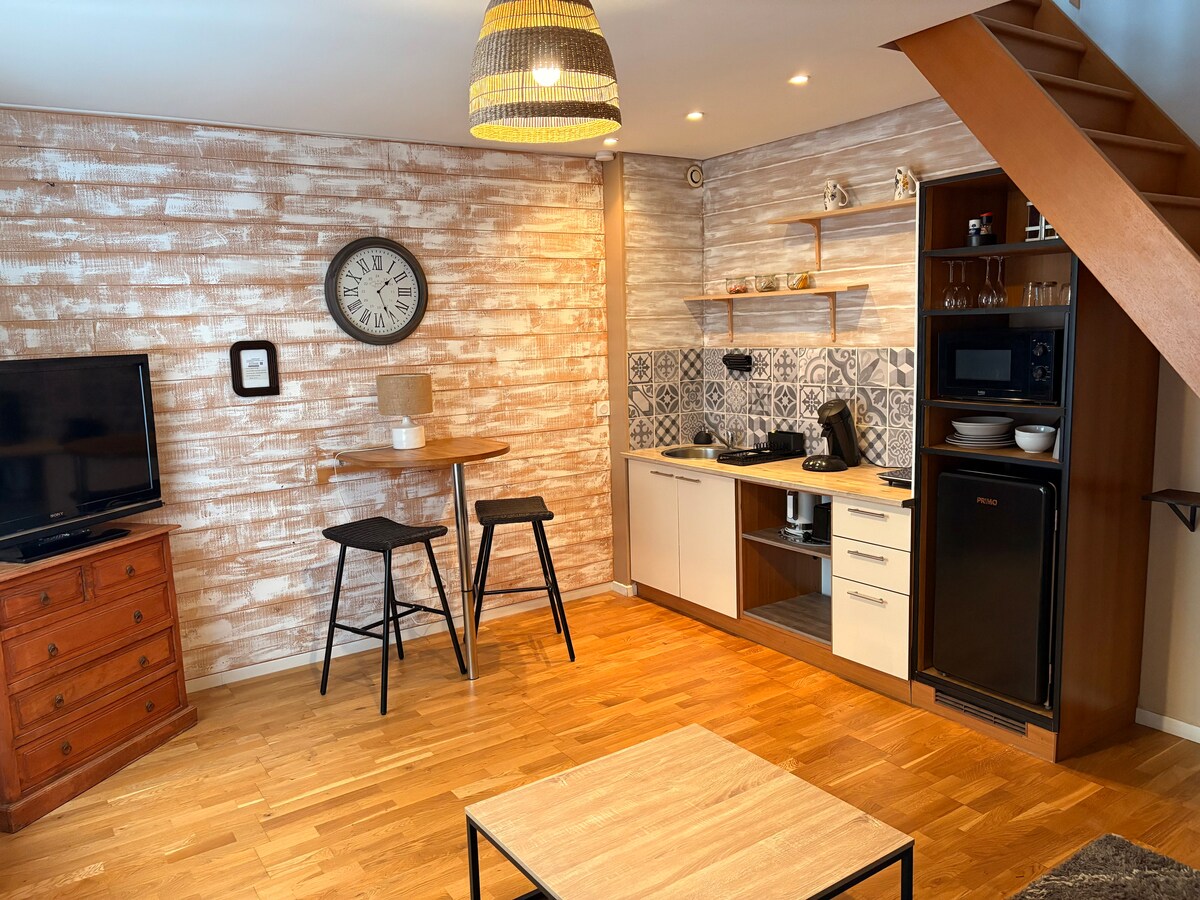Dans une rue calme, Le Mini loft du fox sera votre tanière. Chaleureux, spacieux avec sa pièce de vie de 40m2 et une terrasse de 18m2, Attention l’escalier est abrupte pour monter à l’appartement puis à la mezzanine. Si vous avez un animal merci de le signaler. Amis motards, je peux vous louer mon garage, contactez moi. Pas de wifi. Très important, le centre ville est a 25min à pieds le parking gratuit, on ne peut pas tout avoir alors soyez cool lors de la note pour l’emplacement à votre départ
