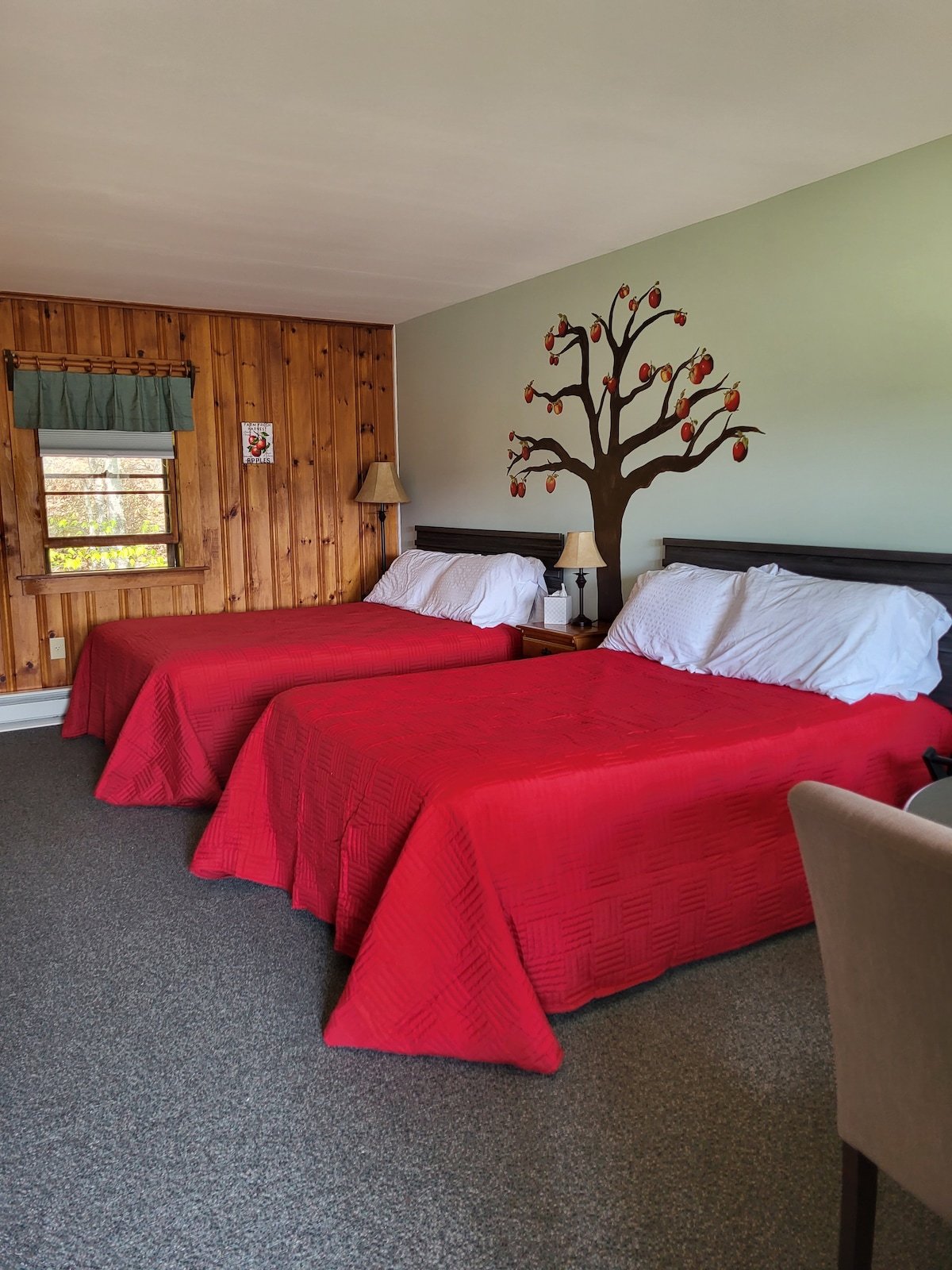 Welcome to Village Place at the Eastern Slope Inn! Must be 21 to check-in, $40 authorization taken at check-in (not an actual charge), no cats. Two double beds and a private bathroom. IF YOUR PUP IS JOINING YOU, please provide advanced notice, a $25/night pet fee for the first 4 nights ($100 max), RABIES RECORDS, and a crate if you must leave them behind. One dog is permitted per room, no cats. Halfway between Main Street and Cranmore Mountain, you will be walking distance to it all!