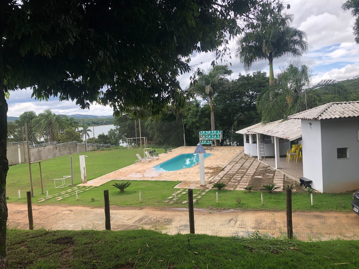 Localizado em Igarapé, esse bangalô possui: 2 Quartos com 2 camas de casal, 1 colchão de solteiro e 1 colchão de casal - roupa de cama por conta do hospede. (7 pessoas) Banheiro Cozinha gourmet contendo: Churrasqueira, cooktop 2 queimadores, geladeira; jogo de panelas, tábua, alguns copos de acrílico, alguns talheres e mesa com 4 cadeiras. Hidromassagem Piscina Sauna e Iluminação em todo o bangalô.