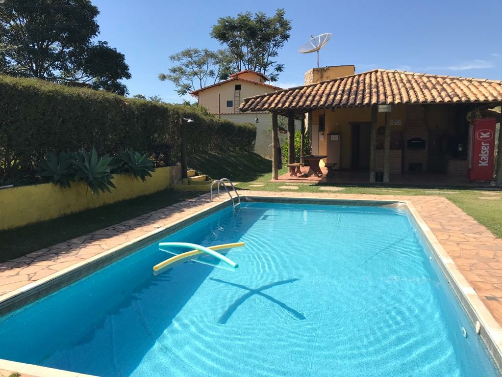 Country house with 3 bedrooms (two suites), main bathroom and large living room with fireplace. 7,000 m2 green area with complete leisure facilities: swimming pool, children's pool, sports court, hammocks, sun loungers and parasols. 30km away from Belo Horizonte, 2km from Cidade do Galo, with easy paved access up to the entrance. BONUS * Discounts from 3rd day (5%), 5th day (10%), 7th day(15%) * Children are charged only when older than 10 * Check-in from 12pm; check-out up to 4pm