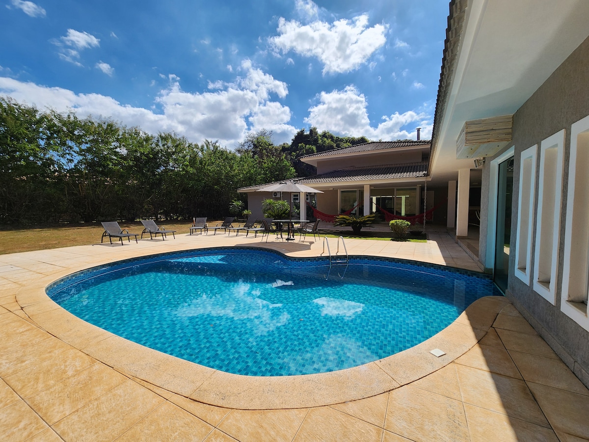 Country house with 3 bedrooms (two suites), main bathroom and large living room with fireplace. 7,000 m2 green area with complete leisure facilities: swimming pool, children's pool, sports court, hammocks, sun loungers and parasols. 30km away from Belo Horizonte, 2km from Cidade do Galo, with easy paved access up to the entrance. BONUS * Discounts from 3rd day (5%), 5th day (10%), 7th day(15%) * Children are charged only when older than 10 * Check-in from 12pm; check-out up to 4pm