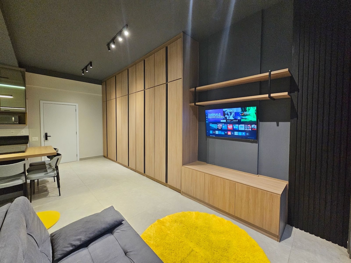 Apartamento montado com varanda que proporciona conforto, iluminação e ventilação excelente. Quarto com pequena copa e banheiro, tudo pensado na comodidade e conforto da sua estadia. Ar condicionado e TV smart novos. Possui estrutura para fazer refeições rápidas com micro-ondas, cafeteira e frigobar. Não fornecemos café da manhã. Estacionamento grátis conforme disponibilidade. O Hotel fica a aproximadamente 3 km do Aeroporto Pampulha, 30 km do Aeroporto Confins, 1,5 km do Estádio Mineirão