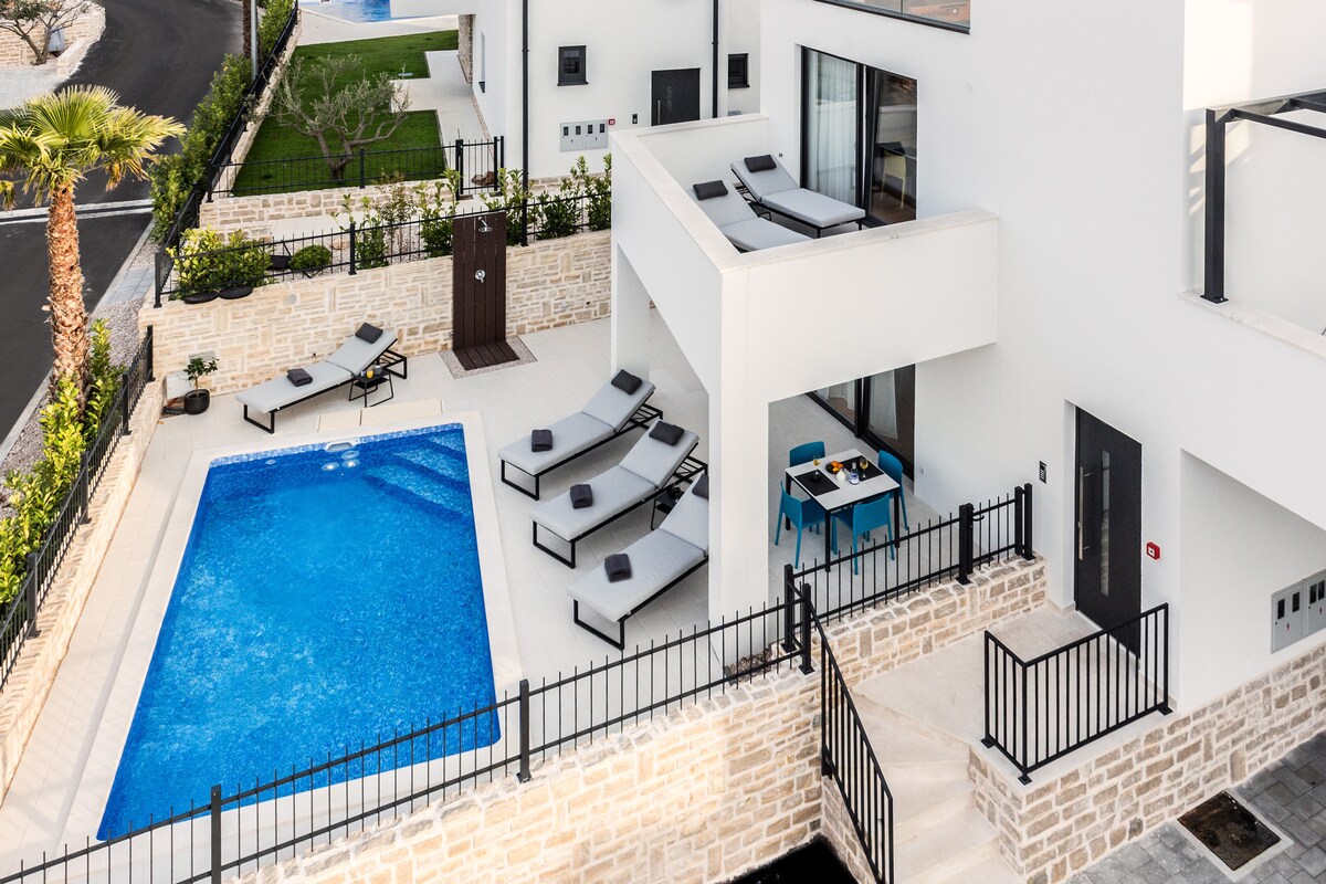 扎达尔豪华顶层公寓: 桑拿-热水浴缸-海景