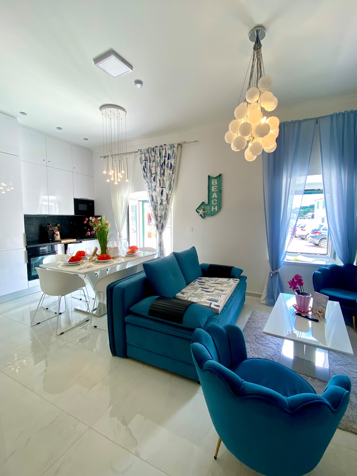 This spacious apartment with beautiful sea view is ideal for family, cuoples and group of friends. The apartment is located near the center of city, city beaches and walking distance to the Garden festival. You have 2 options to park car in front of house on street and its free but not reserved, or on free parking 1min away from house little up the hill.