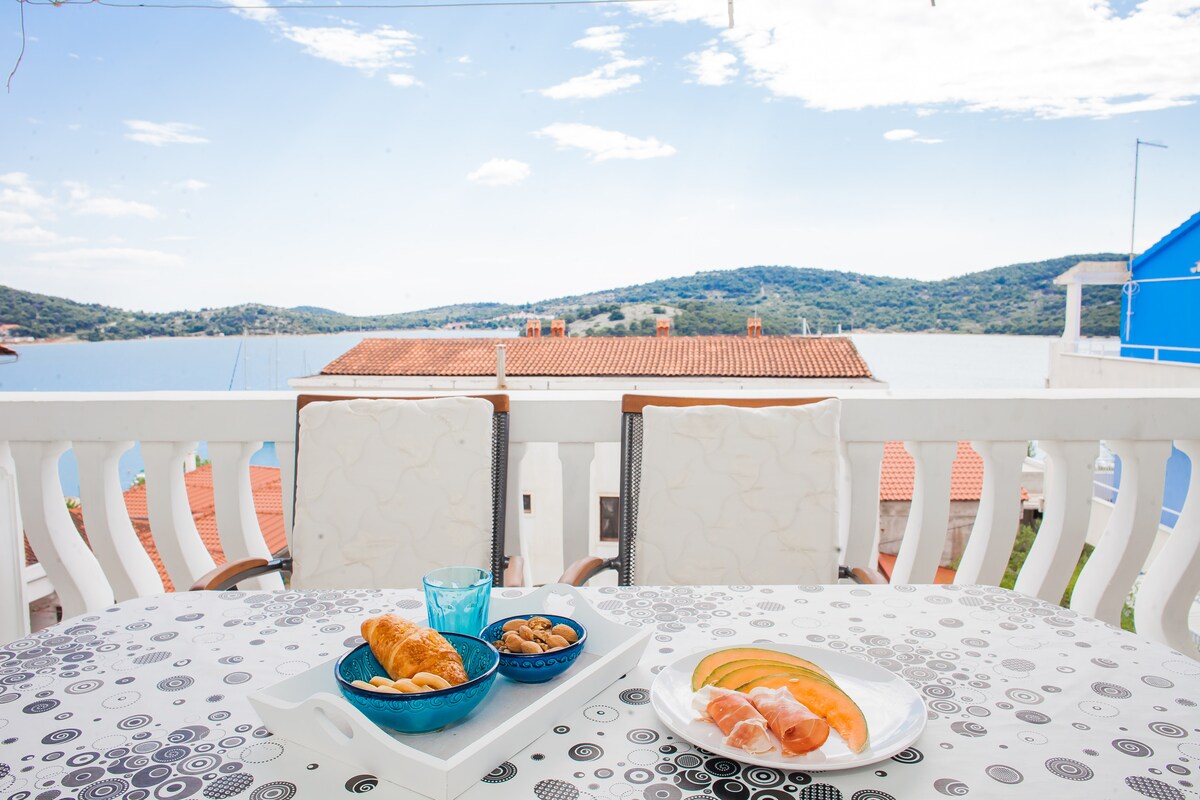 The apartment "Sunwashed Terrace," on the 2nd floor of our house, has a fully-equipped kitchen with a dining area, bedroom, bathroom, and a spacious terrace with a sea view. The apartment is air-conditioned and has a TV and free Wi-Fi. We named our house "Hana Home" because we want our apartments to be your home during your holiday in Tisno.