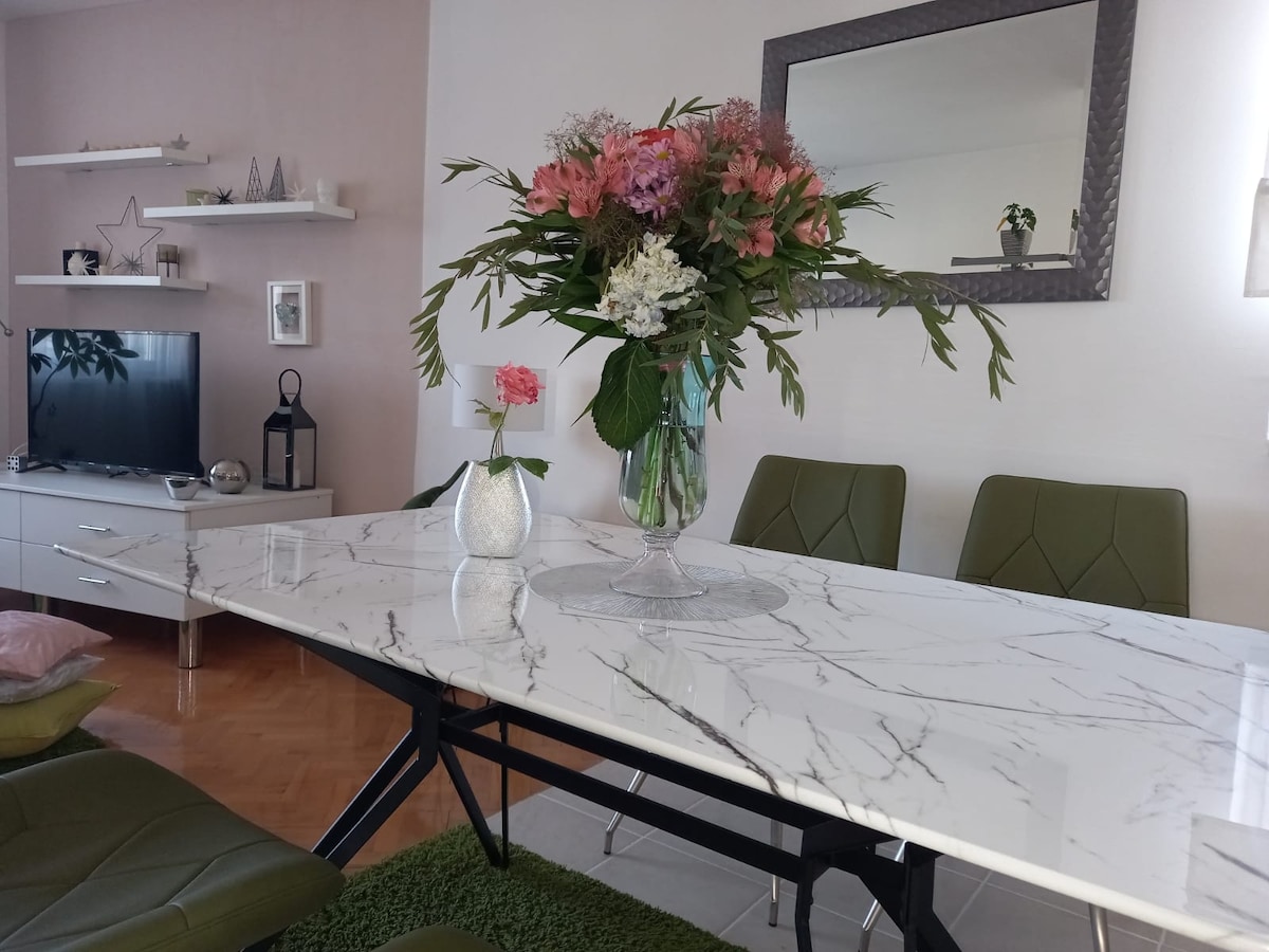 It’s an extremely bright and specious 4 star apartment for real hedonists. Everything is only few minutes away: beaches, centre, sport centre, ambulance, post office, bank, bars, restaurants etc. You can enjoy on our big terrace with a great view on the sea and old town or just cool yourselves, inside the apartment, using air conditions. Although, we do have WiFi, TV and satellite, don’t use it a lot, you can do that at home, rather spend time grilling some fishes on our, outside, barbecue.