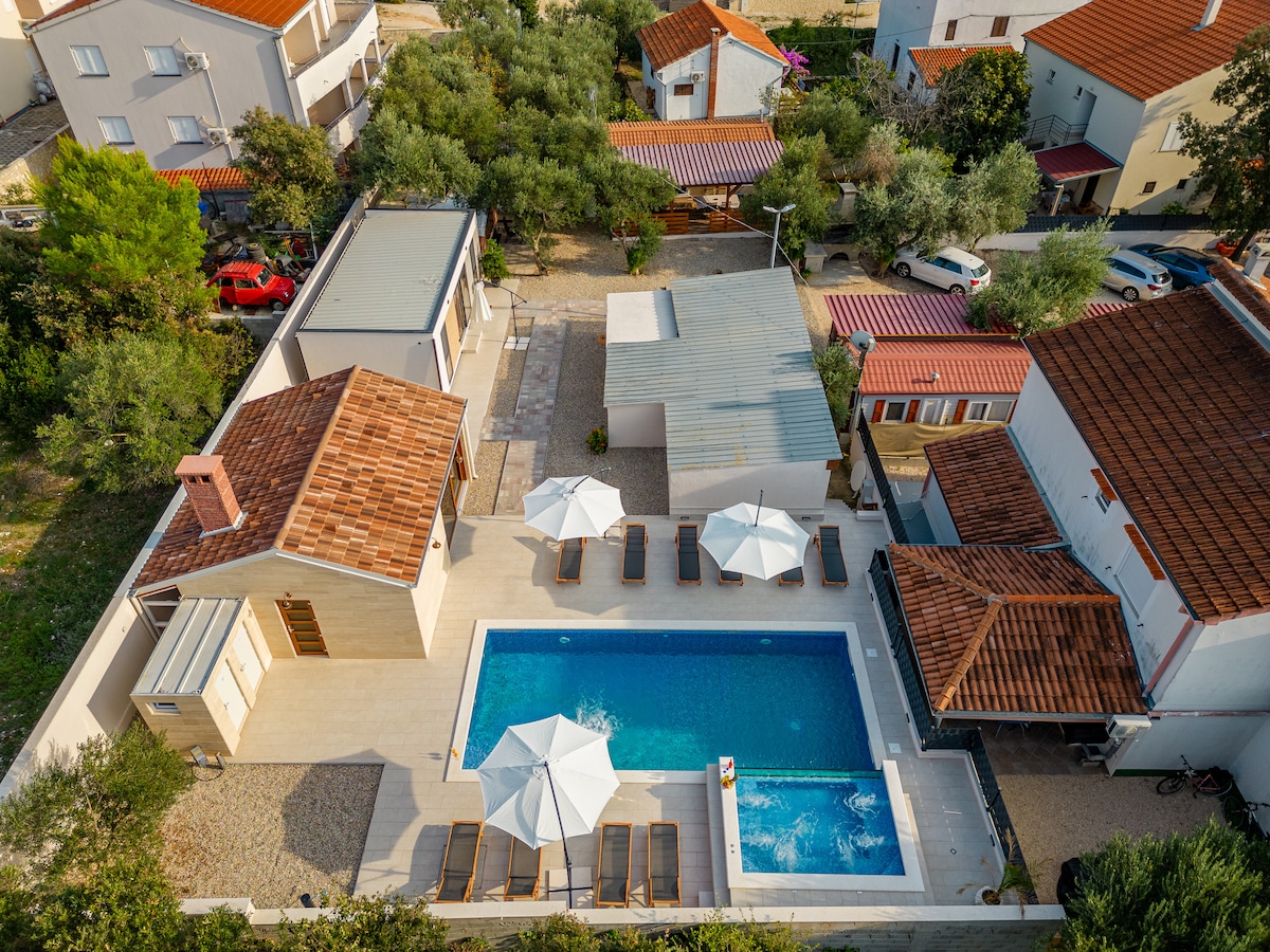 Sevid is a small charming place situated on peninsula in Dalmatia. Placed on Adriatic sea with a beautiful view of nearby islands. There is 150m of relaxing walk from home to a beach. House is surrounded with green areas (shown on pictures). It can present a real Mediteranian style, pure relaxation and comfort. It is small house that shows it´s value throughout outdoor space. PRIVATE POOL WITH COOLING/HEATING SYSTEM