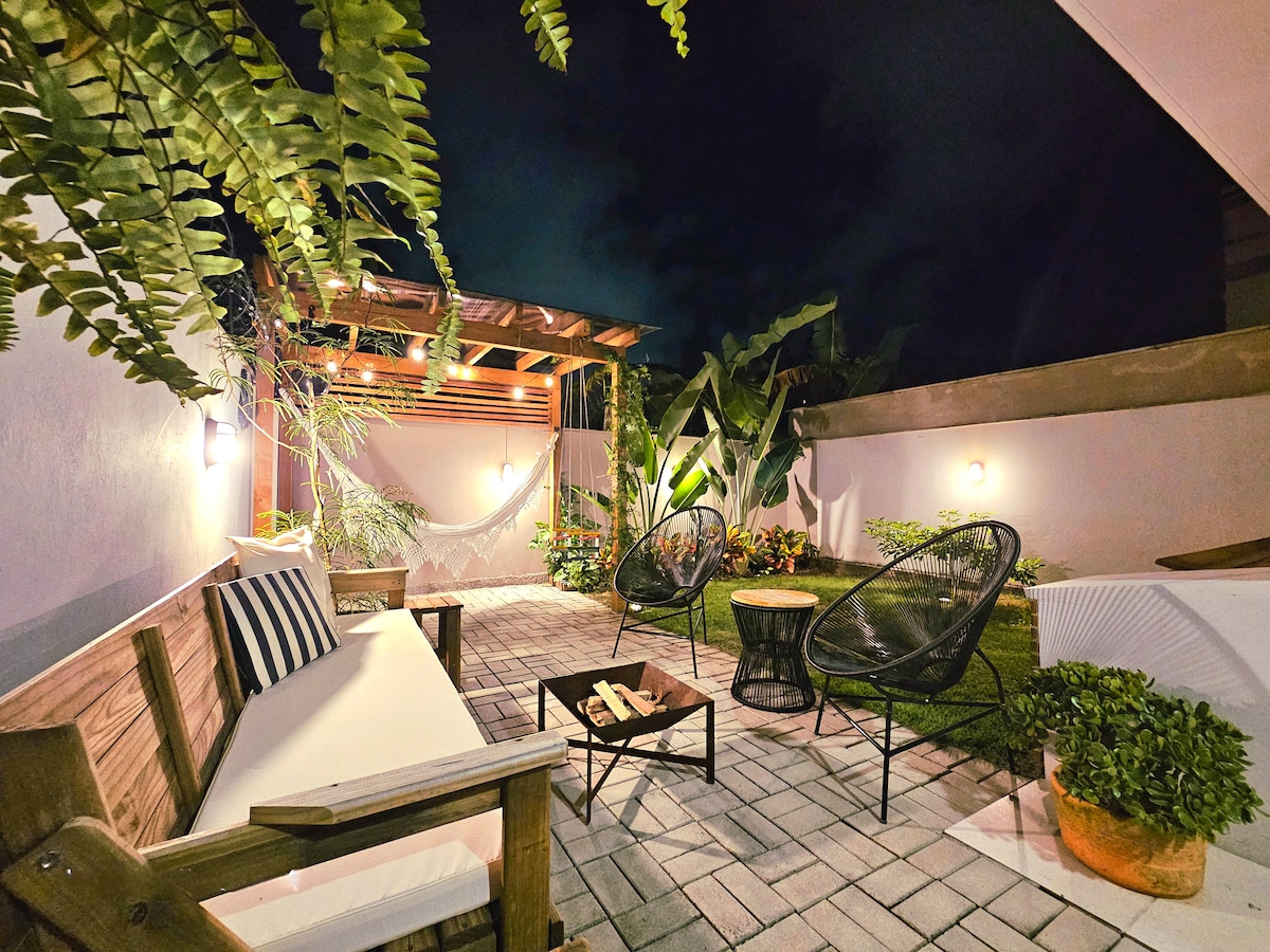 Imagine chegar em um loft cercado por um jardim vivo, com grama macia, flores coloridas e detalhes em madeira reaproveitada que dão alma ao espaço. Um cantinho de paz onde a brisa fresca do mar, a apenas 5 minutos a pé, atravessa o quintal e acalma o corpo depois de meses de rotina intensa. Aqui, cada detalhe convida você a respirar fundo, desacelerar e transformar sua estadia em um merecido descanso. E, quando quiser explorar, o Beto Carrero World está a apenas 10 minutos de carro.