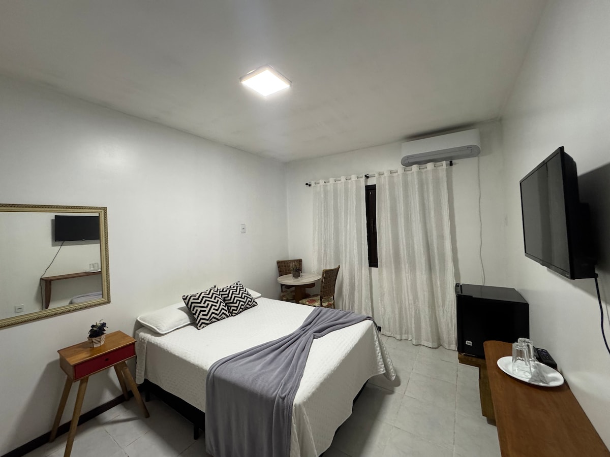 Kitnet completa com cozinha e todos os utensílios pra vc passar as férias! Ofereço churrasqueira, e itens de praia, além de uma mesa de ping pong pra vc curtir! Local super seguro e agradável. Ar condicionado no quarto, vaga de garagem e wifi. Ideal para quem usa os serviços do hospital de Penha. Localizada à 4 minutos do hospital.