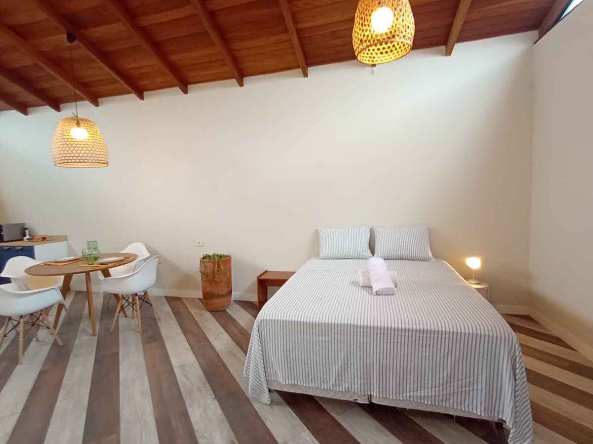 Espaço acolhedor apenas 1 quadra do mar. Perfeito para casais e famílias, com localização estratégica para curtir as praias da região e visitar o Parque Beto Carrero World. Localizado em condomínio fechado com estacionamento no local, e fácil acesso a mercados, padarias e comércios próximos. 🏡 A suíte oferece: 🛏️ 2 camas de casal 🚿 Banheiro privativo 🍳 Cozinha privativa, equipada com itens básicos para preparo de refeições 🧺 Roupa de cama inclusa.
