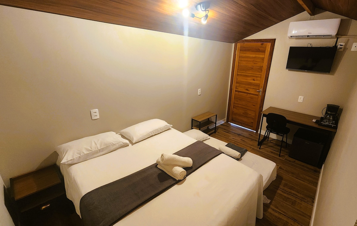 Suíte p/ 2 Adultos com Ar e Workspace